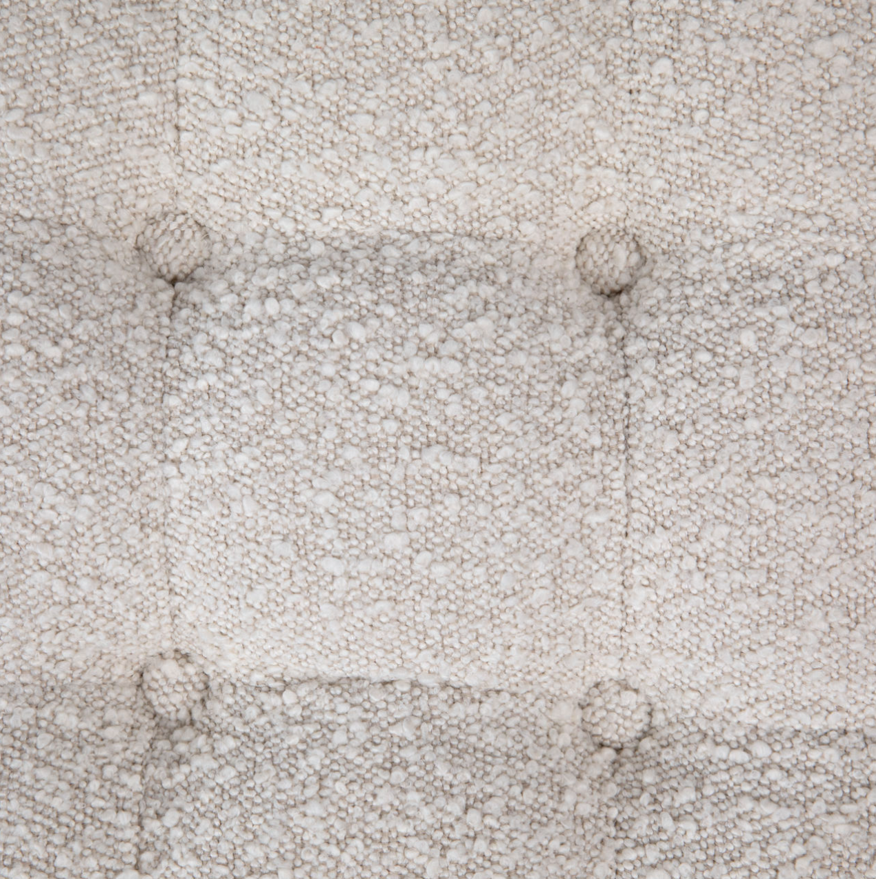Made from cream polyester blend boucle upholstery and oak wood legs.