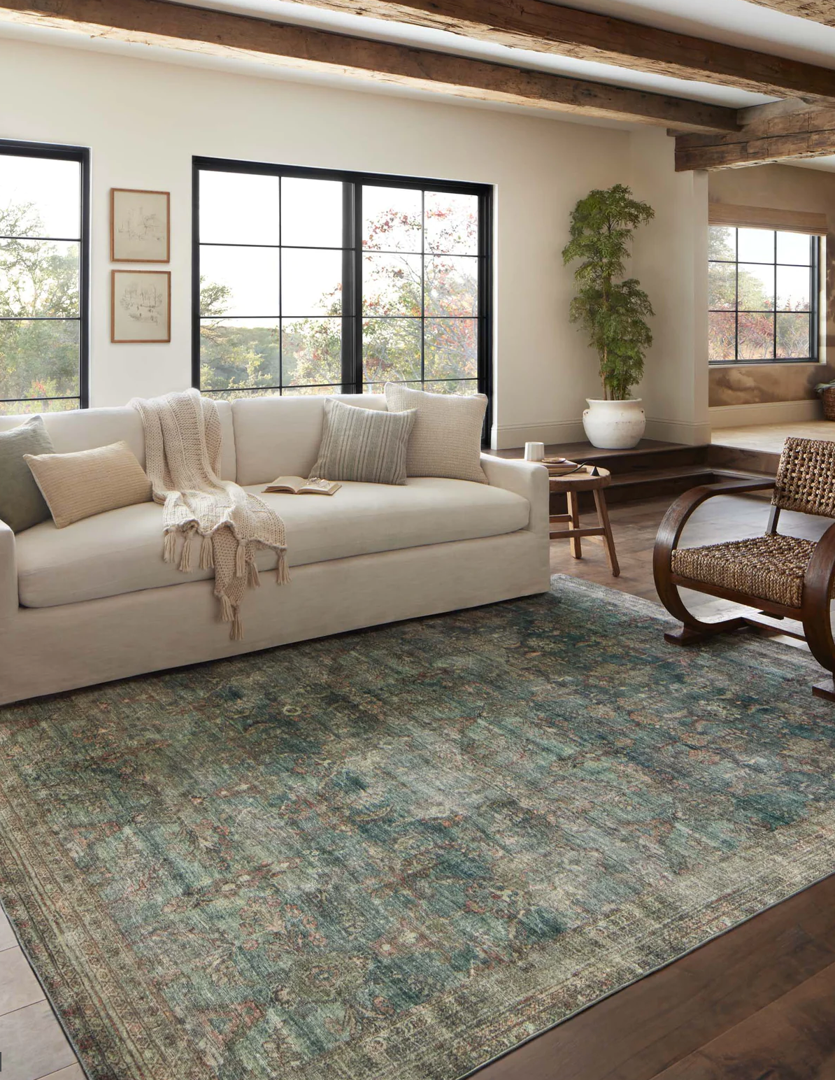 Clean spills immediately by blotting with a clean, dry sponge or cloth. When needed, machine wash in cold water on delicate cycle using a mild, non-bleach detergent. Hang to dry or tumble dry using the delicate setting. Not all rug sizes fit in all machines. Visit the product page on loloirugs.com for more care instructions. A rug pad is highly recommended on all surfaces to prevent slipping, add cushion, and improve durability. For vacuuming, use a vacuum cleaner without a beater bar or set the bar to the highest pile setting. If your vacuum has variable power settings, set on low. Vacuum full length of the rug, turn and repeat to the next area, rather than a back and forth motion.