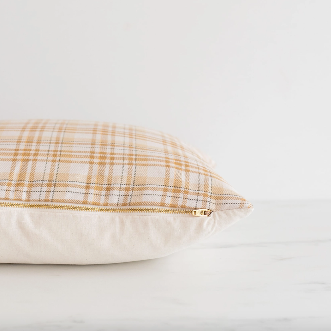 Our BILLIE pillow cover is created using a bold and golden plaid fabric. This retro inspired pillow cover adds a touch of fun to any living spaces and is sure to stand out.
