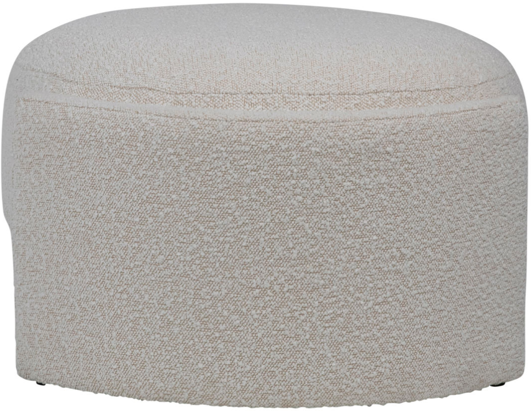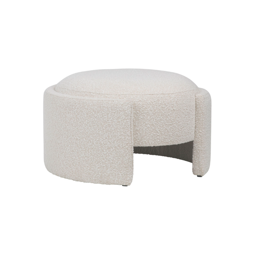 Add a contemporary touch to your seating arrangement with this lovely ottoman. Featuring a round frame supported by a stunning off-white boucle upholstery for extra softness and comfort. Use this ottoman as a centre table to display small tray and knick-knacks or as a place to prop your feet up after a long day. Performance Fabric