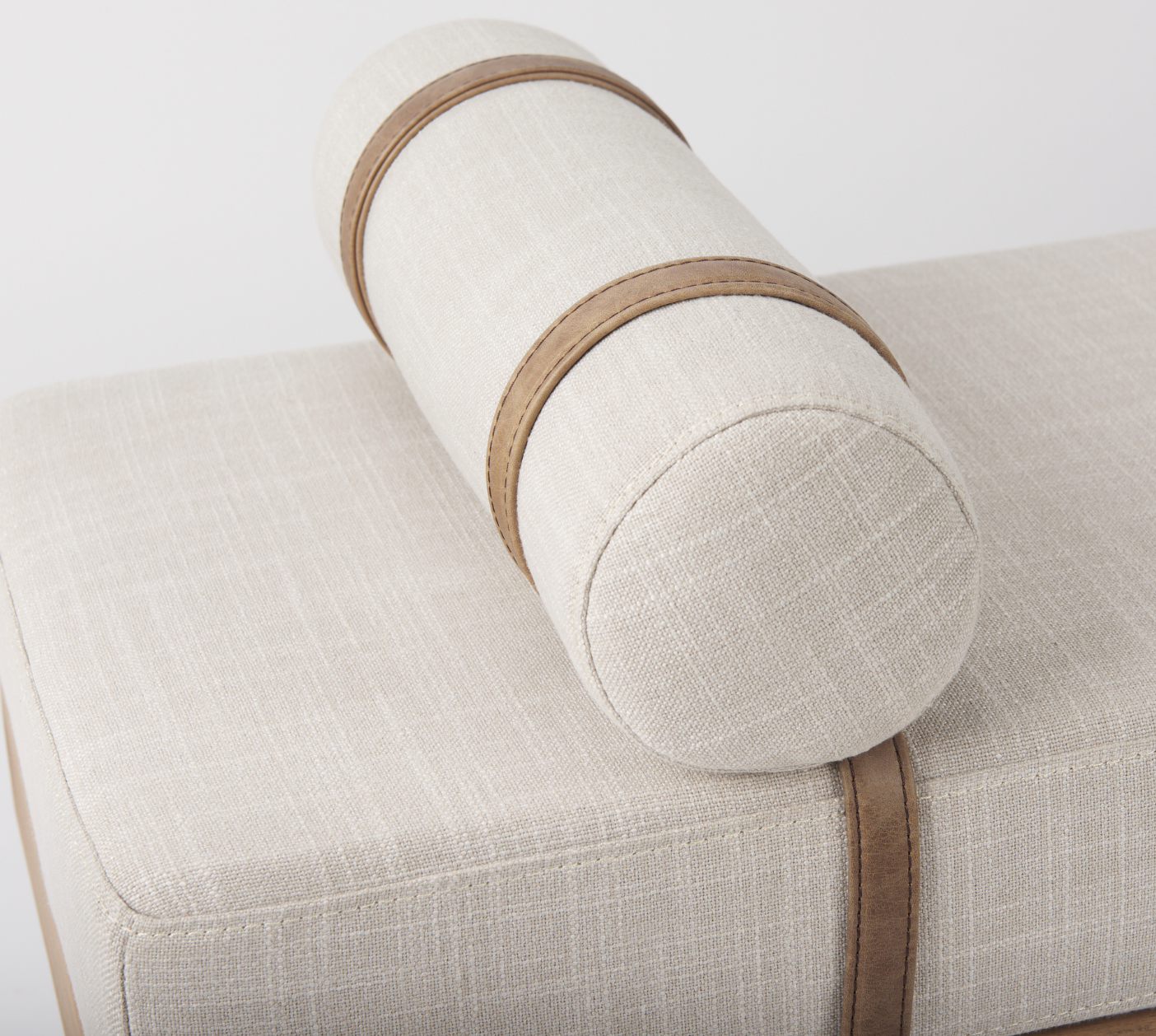 There’s nothing pretentious about this enticing furniture piece. The textural combination of wood, metal and fabric collide to bring you the Colburne Bench. This sophisticated piece has been lovingly crafted out of a solid, sea-sand brown wood, which has been accentuated by matte black, iron legs and topped with a cream fabric upholstered seat cushion. Lastly, be sure to take note of the beautiful bolster pillow that has been accentuated by leather strap (it's all in the details).