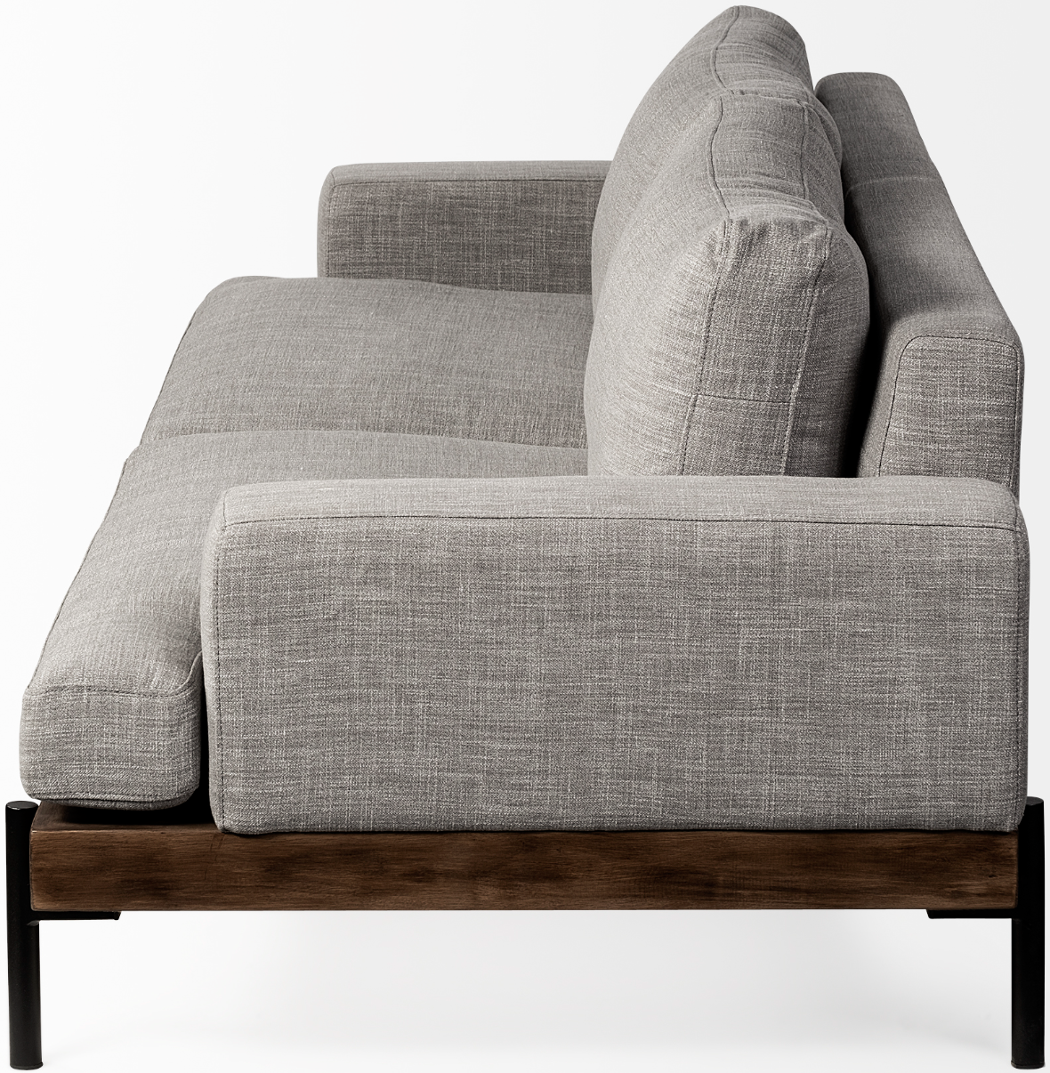 The Colburne is a luxurious 3-seater sofa that boasts of perfectly padded, upholstered deep seating braced by a wooden chassis that is mounted on a four-legged solid iron frame. Wrapped in a plush fabric that complements the medium-brown wooden accents and matte-black toned iron legs, the Colburne makes not only for a visually enticing seating option but also for a stable and sturdy one in any contemporary space.