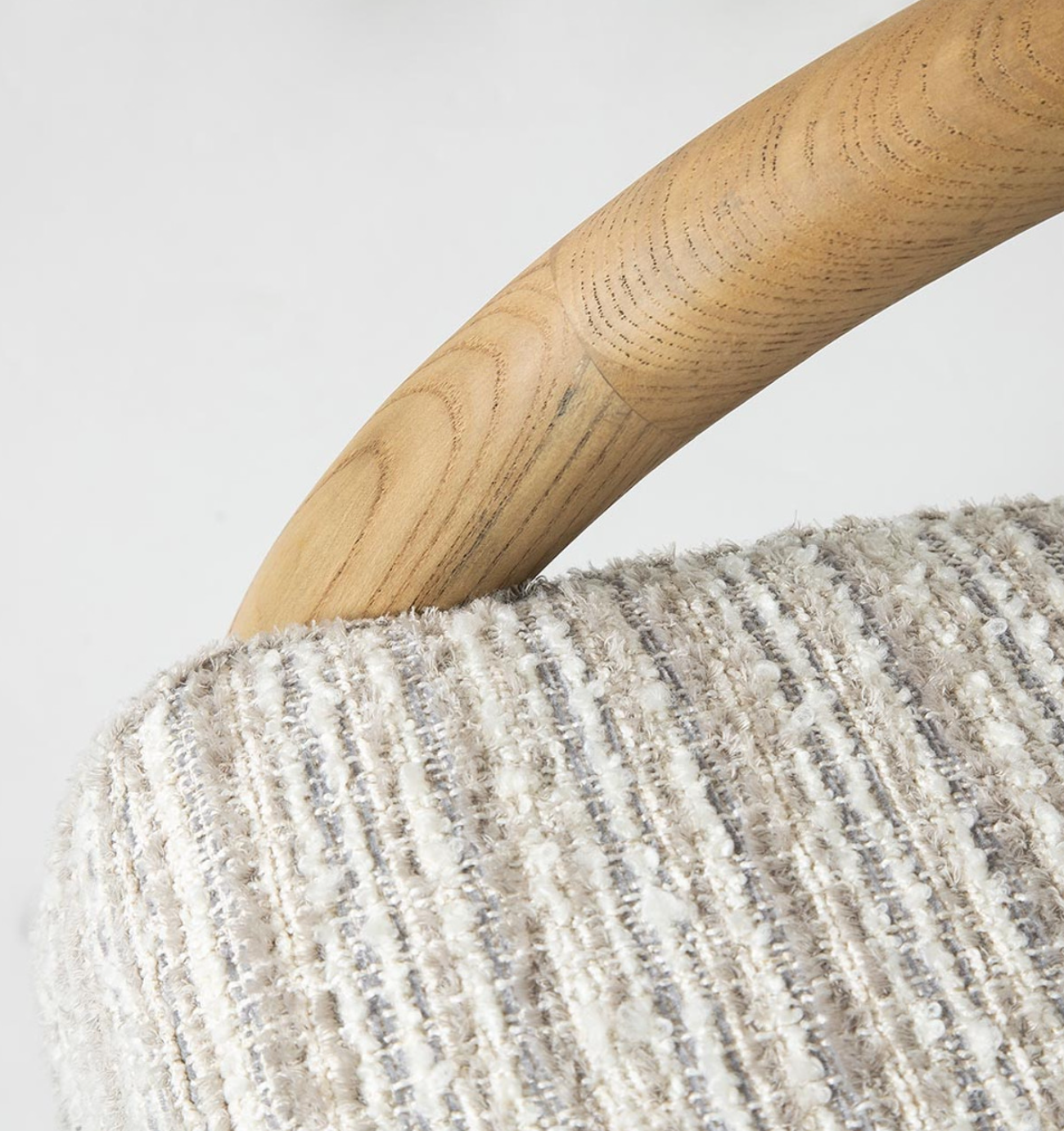 This isn’t just any seat in the house—it’s a slice of heaven where comfort meets laid-back luxury. With its open, curved arms resting on a wood base, it brings a breath of fresh air and modern sophistication to any room. Every inch is the perfect invitation to unwind and craft moments worth remembering, all while nestled in the kind of fabric that whispers "relax" in the most elegant way.