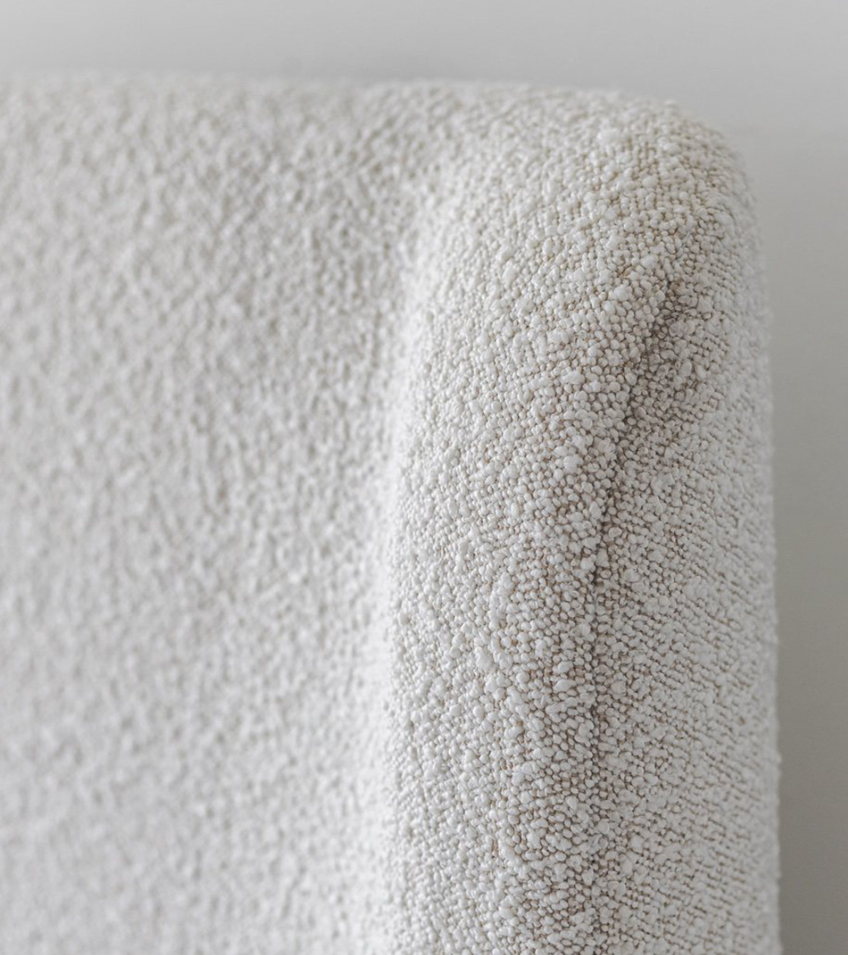 Upholstered in a show-stopping off-white boucle fabric, you will fall in love with the way Faye looks in your space. Functional and beautiful, the gently curved headboard adds subtle on-trend style and elevated design.
