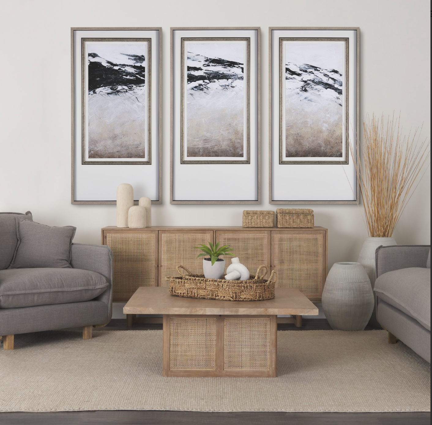 Sleekly crafted from solid mango wood and finished with classic cane details, the Grier Coffee Table brings a sense of relaxed sophistication to contemporary living spaces. This coffee table is a perfect Mediterranean accent piece to anchor a space. Place in living rooms, great rooms, or office spaces, this coffee table offers a beautiful surface to display objects, trays, and accessories in a room and perfectly combines with other pieces within the Grier Collection.