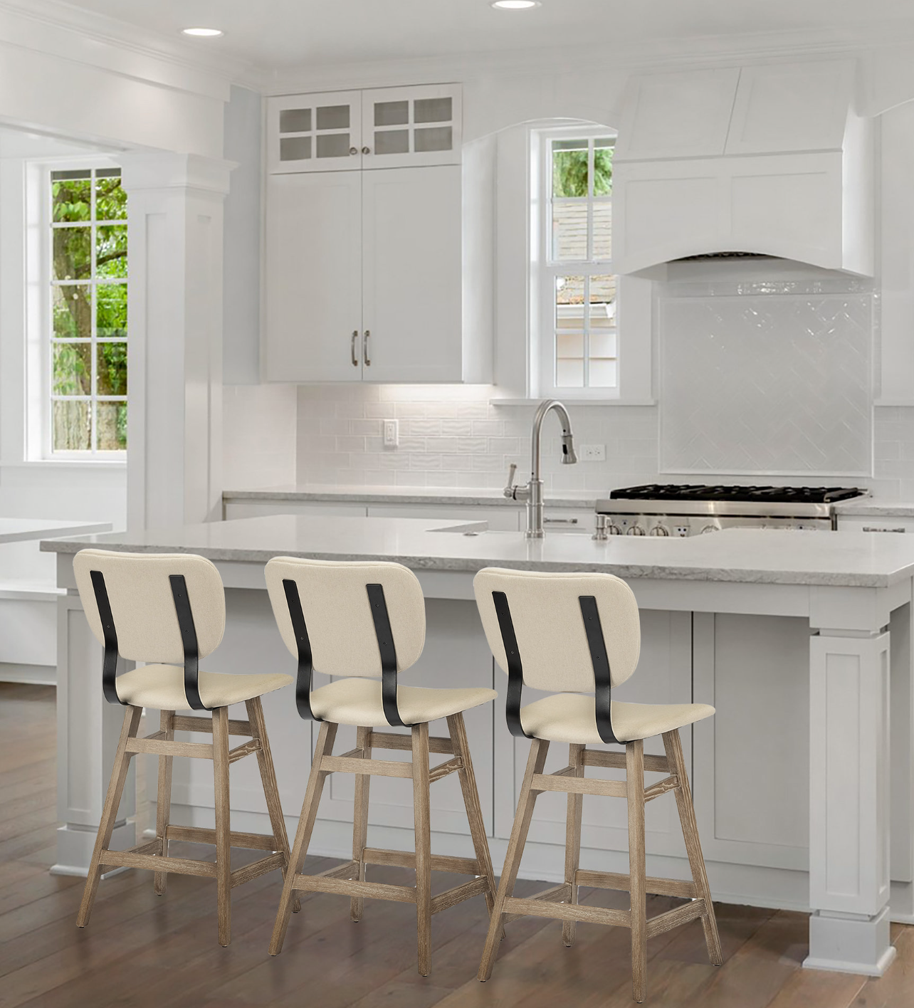 The Haden is a comfortable, chair-style stool featuring a seat and back wrapped in a cream-toned fabric with exceptional cushioning. The seating is mounted atop a stylish, four-legged beechwood base equipped with footrests that stabilizes the stool to perfection. A perfect combination of style and comfort, the Haden fits perfectly among other pieces in spaces based on the farmhouse, lakeside, industrial and enduring elegance design style.