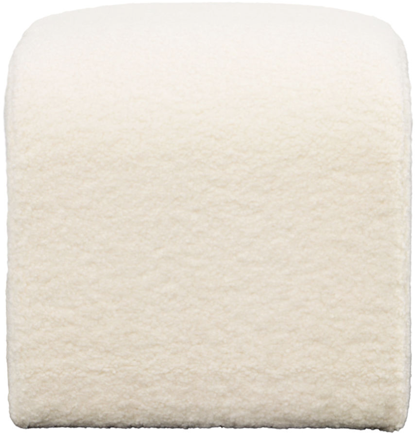 Made from faux sheepskin upholstery in performance fabric and plywood.