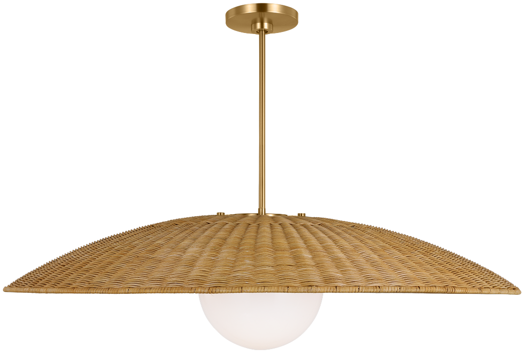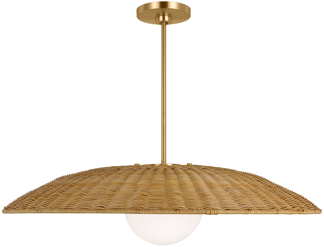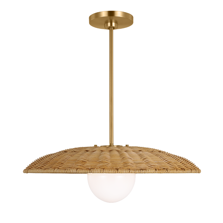 Shade made from natural rattan and steel in burnished brass.