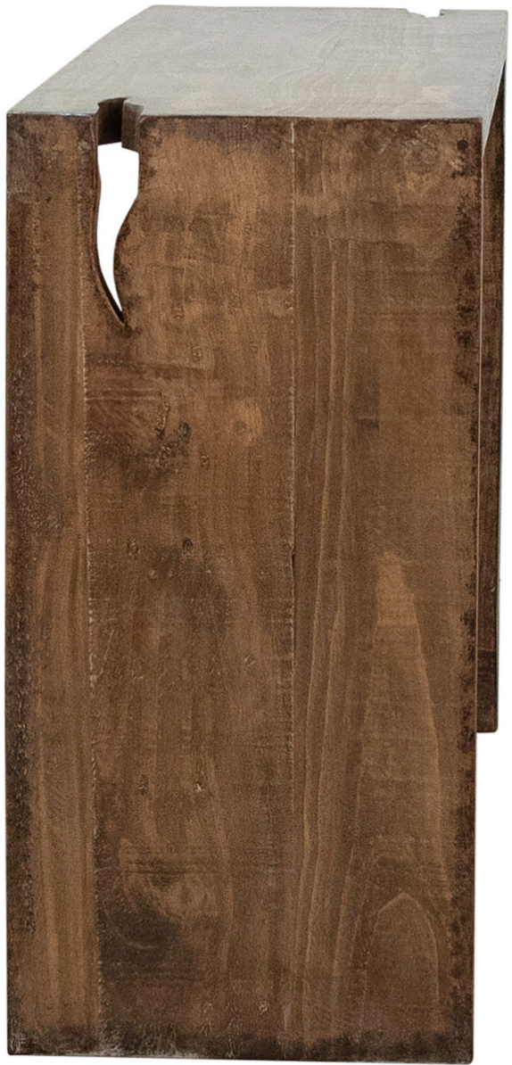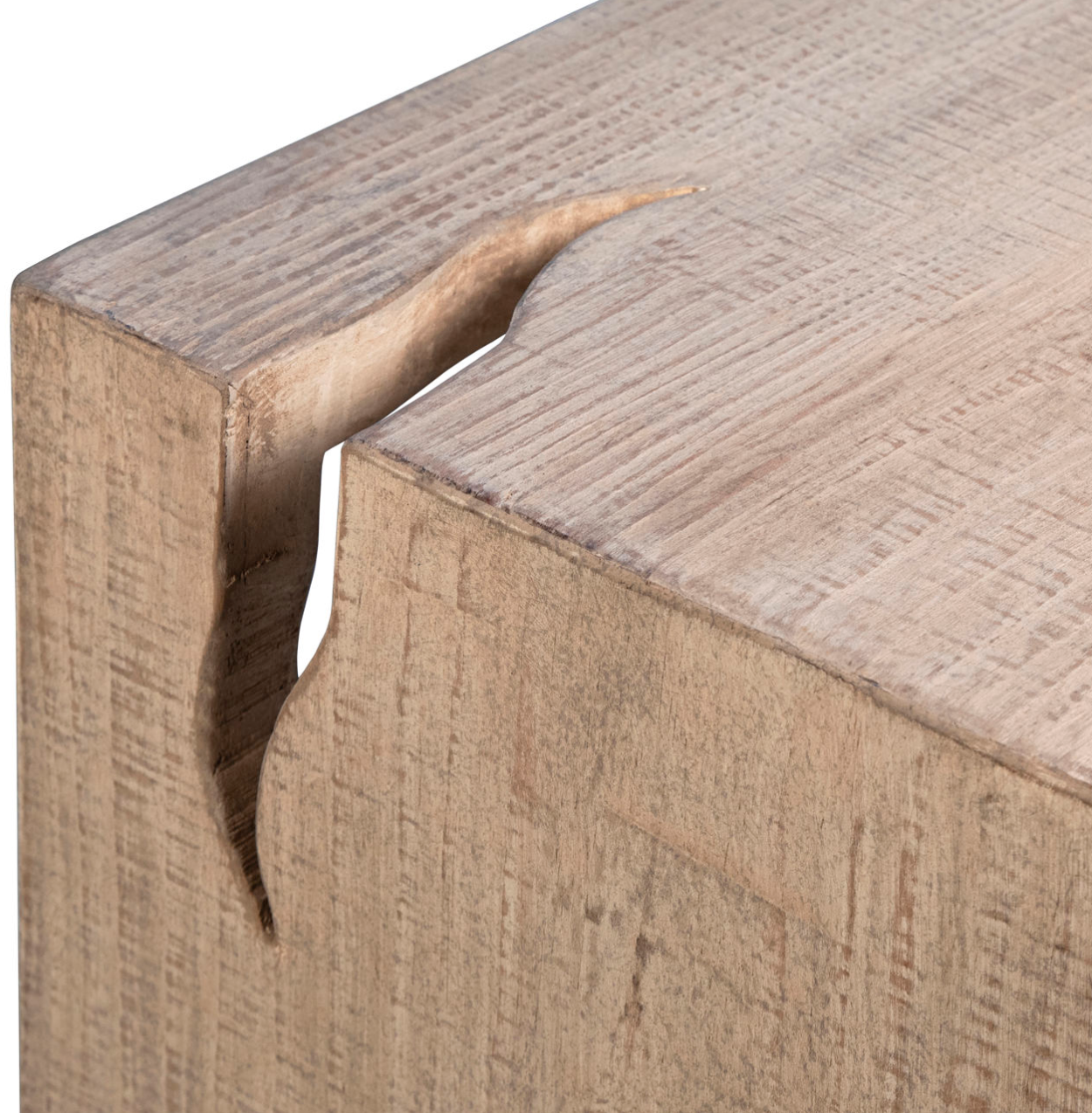 Crafted from reclaimed pine wood, this classic Console Table showcases the beauty of its natural texture in a minimalist design. Featuring two intentional wood cut-outs that add to its natural charm. Finished in a beautiful light warm wash, dark or medium stain to add a neutral statement to your dining room.