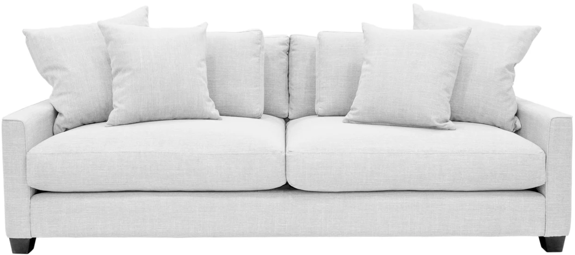 Cushions must be fluffed regularly to maintain their shape. An occasional feather may poke through the ticking and fabric. Wrinkling on seat and back cushions is normal for feather styles.