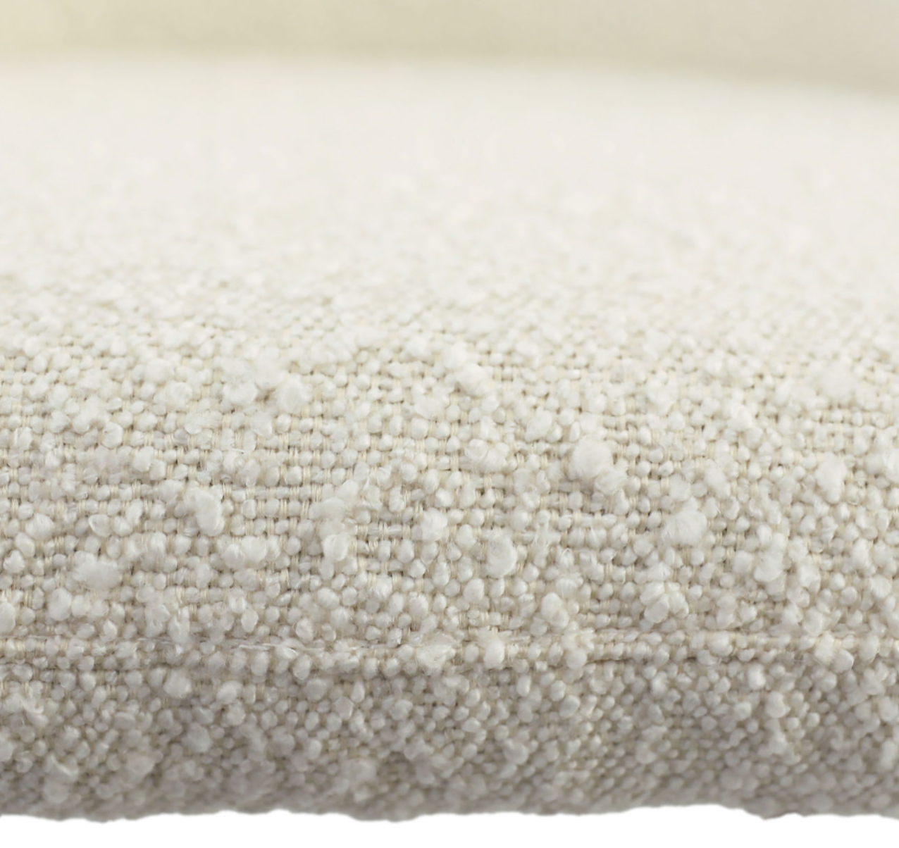Made from off white boucle polyester blend upholstery and matte black metal legs.