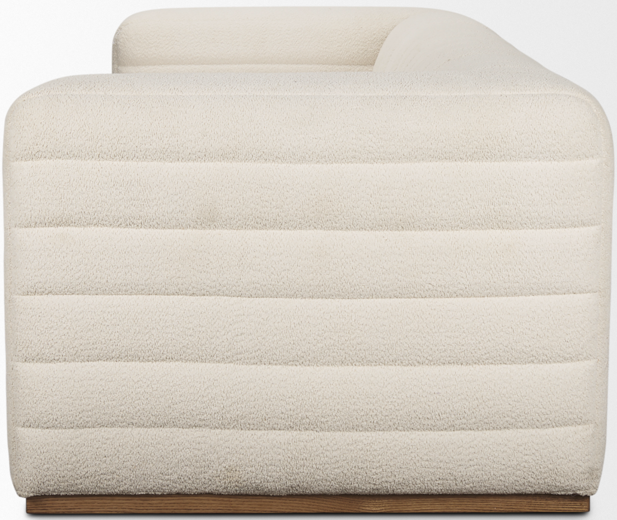 The Ricciardo Accent Chair is a luxe arm chair in an elegant cream boucle fabric. The channels of boucle create a ribbed effect that presents a magnificent textural aesthetic on all sides. For a chic twist, it is fitted with slim square wood feet that ground the chair. This meticulously designed collection will make a bold statement for years to come.