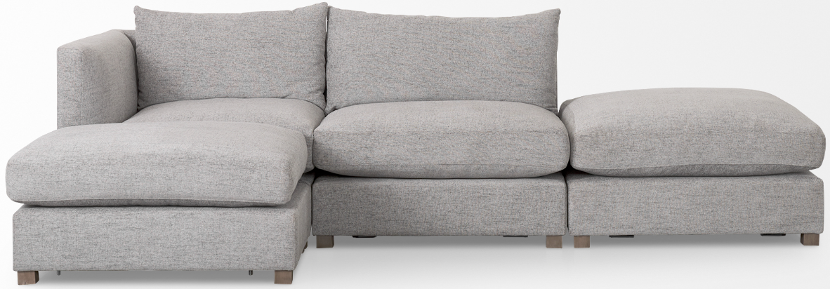 - 4 Piece (w/ 1 Ottoman): 2 comfort-inducing corner elements, 1 armless element to add length where needed, and 1 full-size ottoman for versatile surface space.