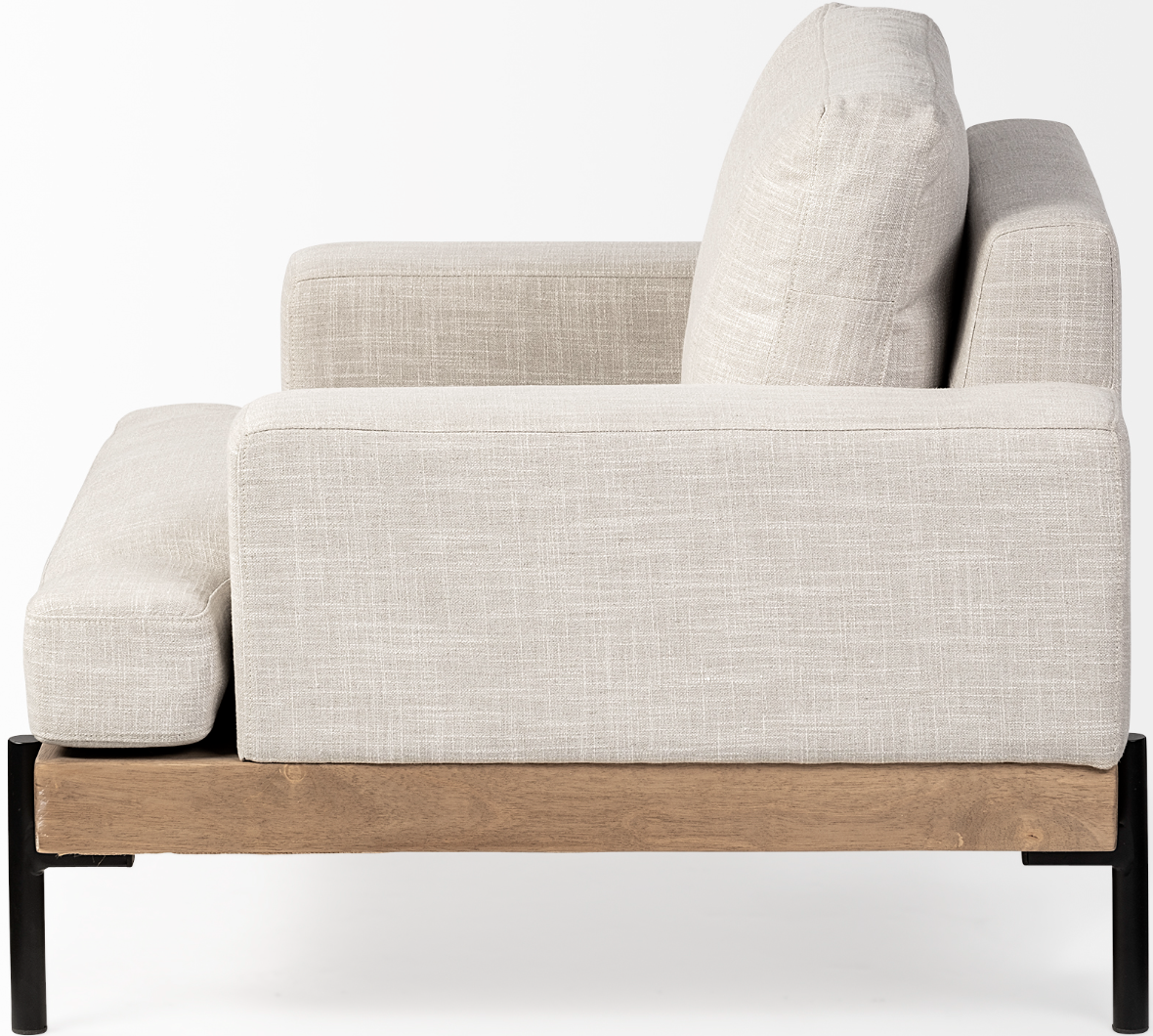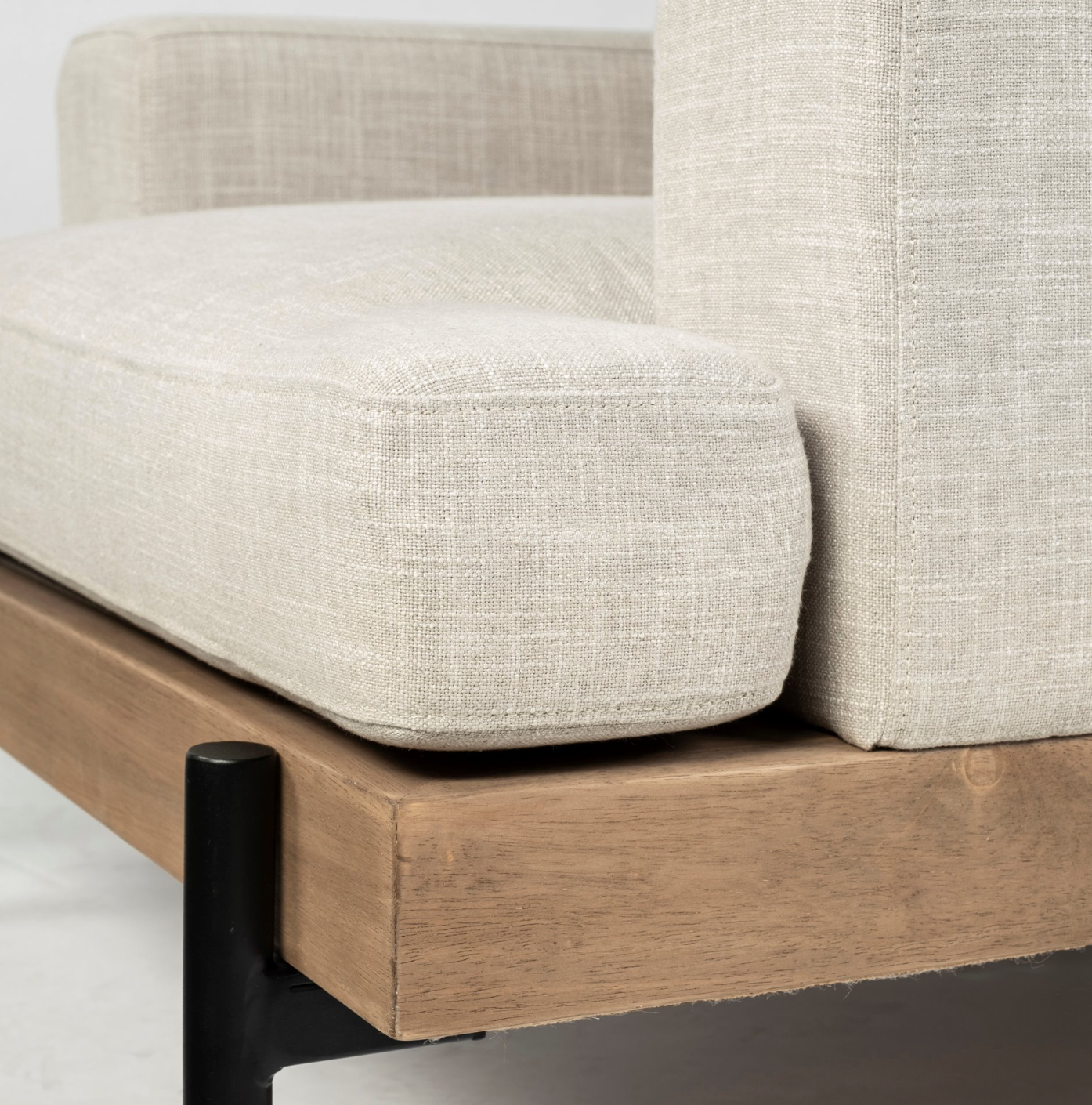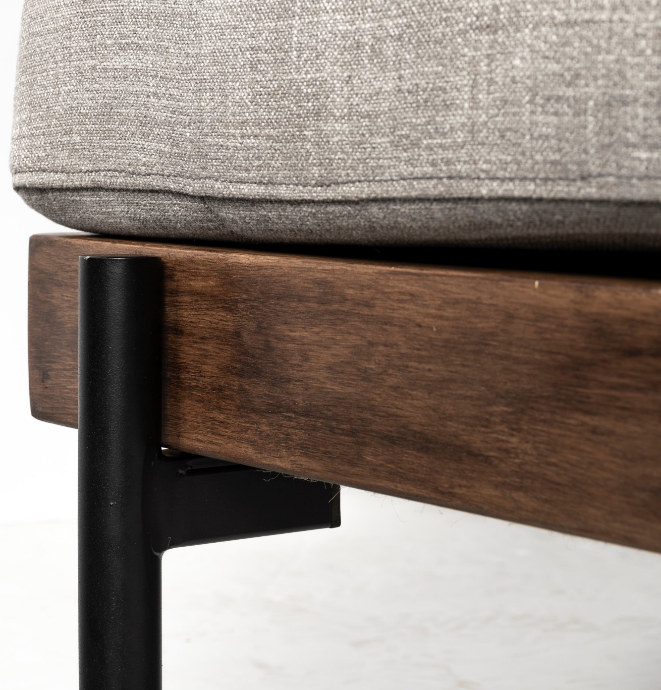 The Colburne is a luxurious chair that boasts of perfectly padded, extra-wide upholstered seating braced by a wooden chassis that is mounted on a four-legged solid iron frame. Wrapped in a plush fabric that complements the medium-brown wooden accents and matte-black toned iron legs, the Colburne makes not only for a visually enticing seating option but also for a stable and sturdy one in any contemporary space.