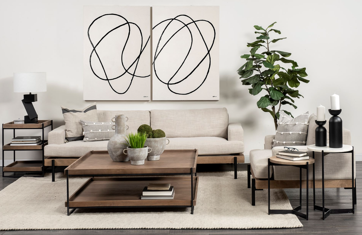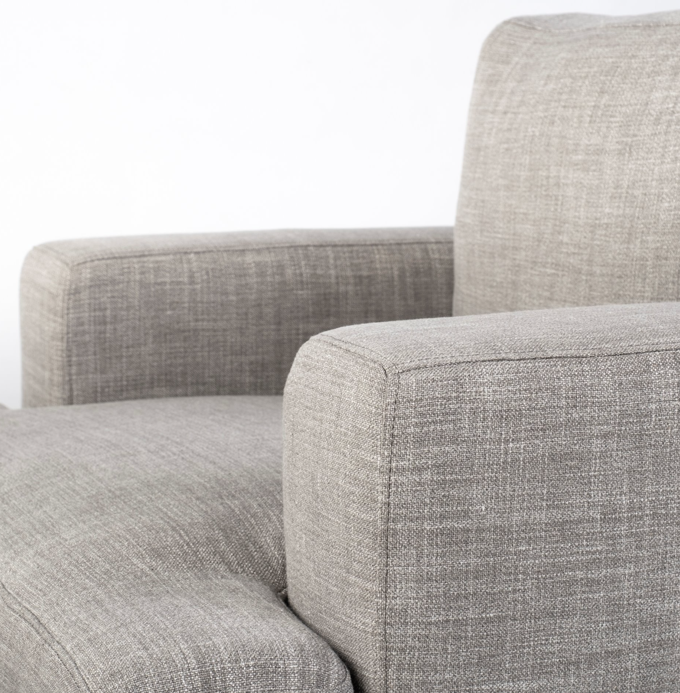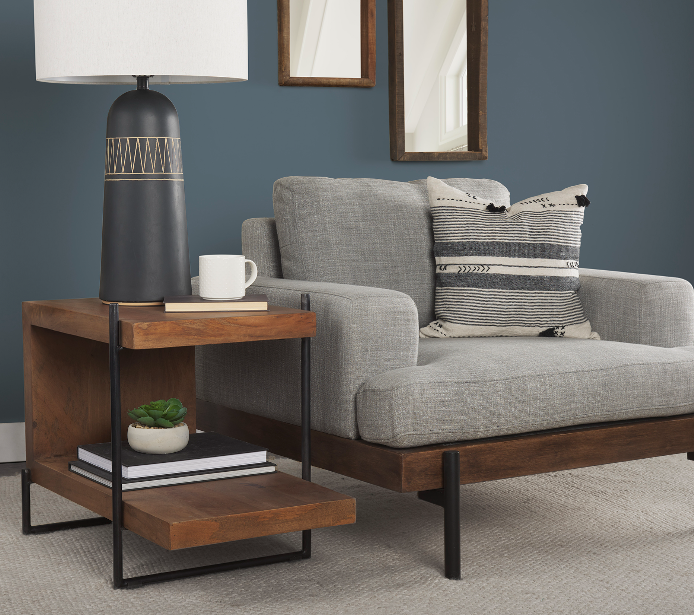 The Colburne is a luxurious chair that boasts of perfectly padded, extra-wide upholstered seating braced by a wooden chassis that is mounted on a four-legged solid iron frame. Wrapped in a plush fabric that complements the medium-brown wooden accents and matte-black toned iron legs, the Colburne makes not only for a visually enticing seating option but also for a stable and sturdy one in any contemporary space.