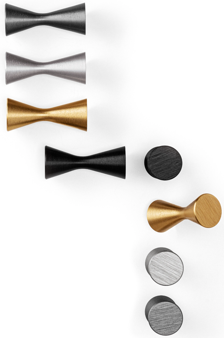 Dean is a wall hook of small dimensions which adds style to any room. Made in aluminium it's structured using simple, discrete lines that draw the characteristic shape of a diabolo. Available in four different finishes with a shiny touch, it stands out due to its minimalist, simple and functional design. Dean adds elegance to the walls of any hallway, bedroom, kitchen, bathroom or office. The subtlety of this wall hook even extends to its knob version. Fitted together, they create surroundings where the simplicity of the lines and brightness of the finish add a unique personality.