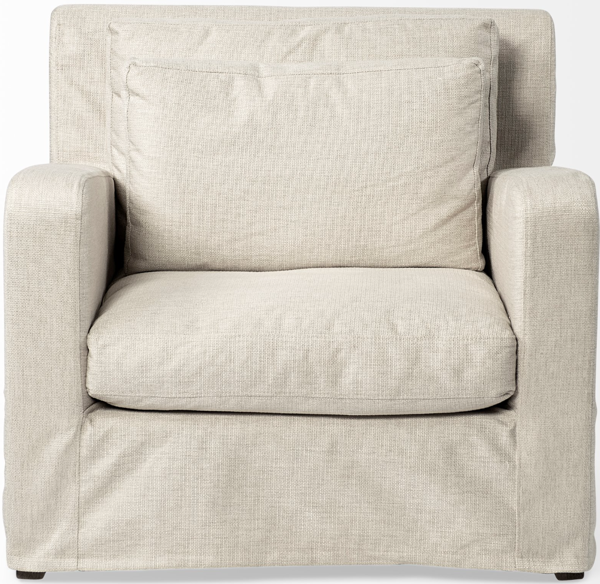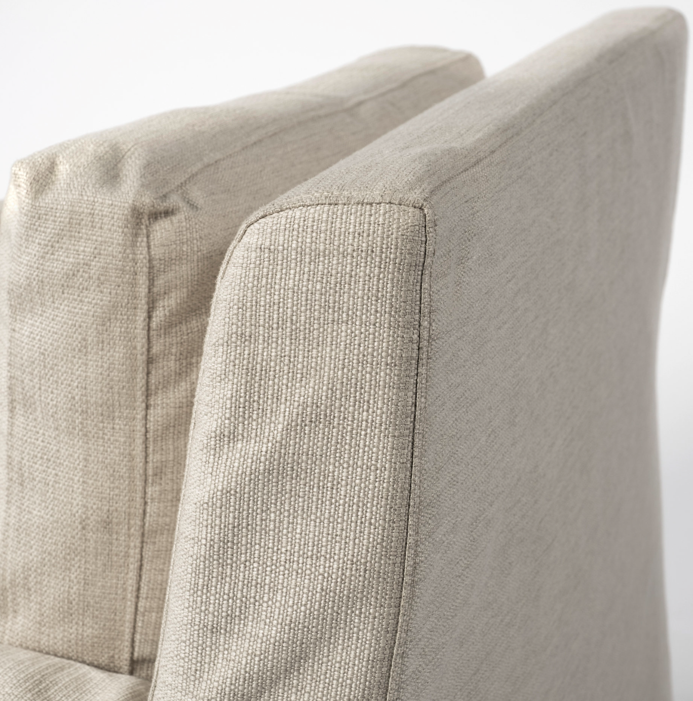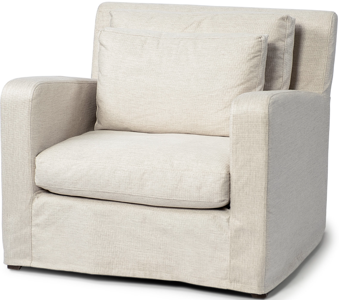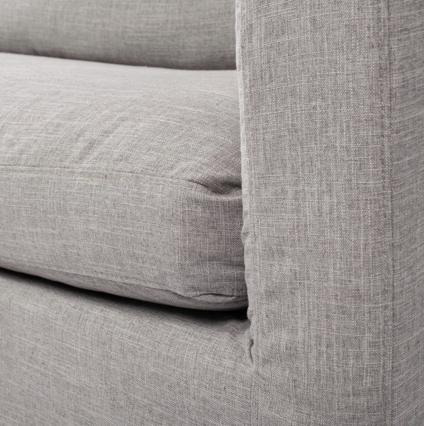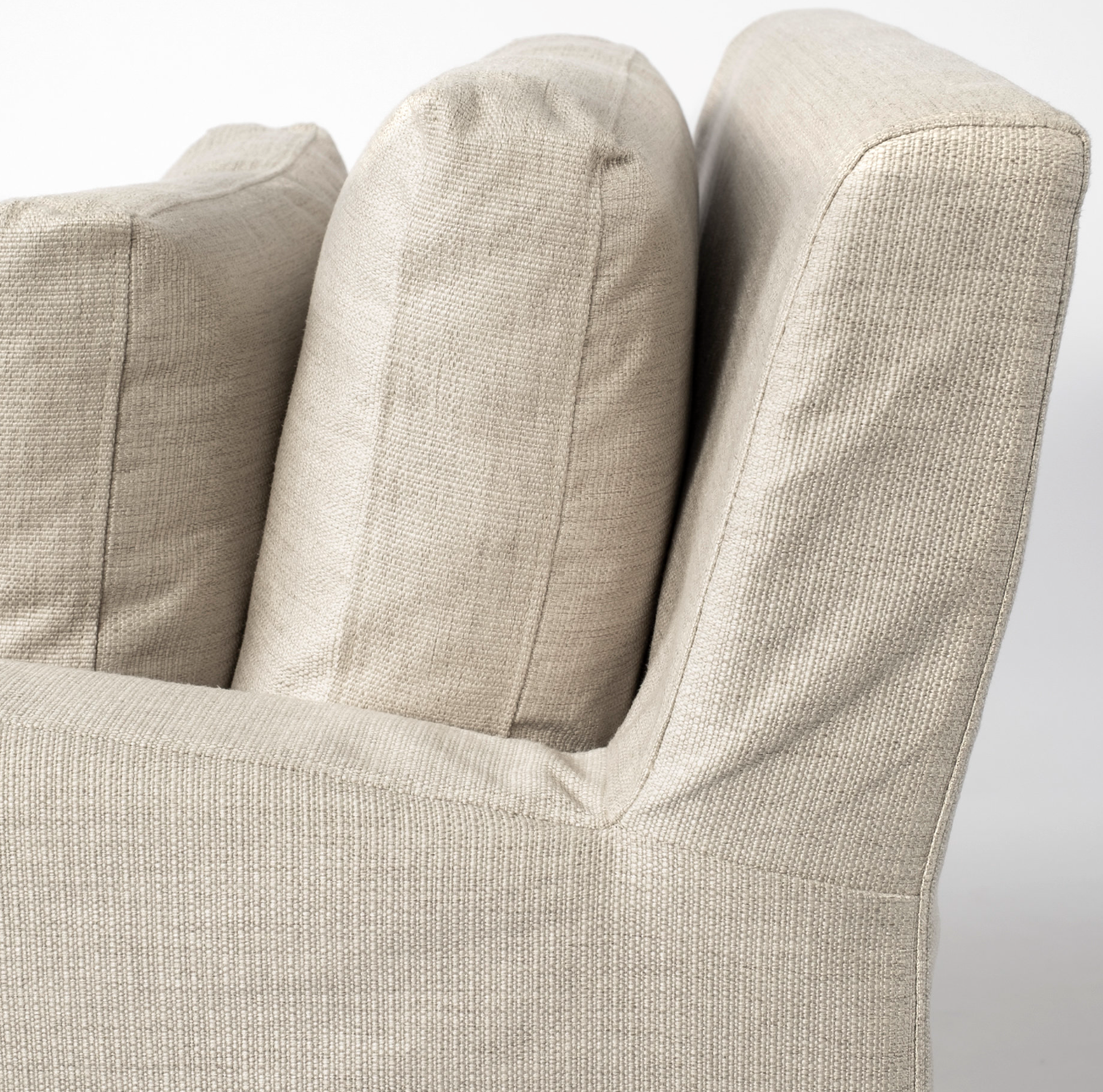The Denly's beauty lies in its simplicity and unostentatious feel. Featuring a solid wood frame and four-legged base finished in a natural brown polish, the Denly makes for an exceptionally sturdy and stable choice of accent seating. In addition to this, the Denly also boasts of plush slipcover upholstery that is complemented by the perfectly stuffed deep seating and detachable back cushions. With a simple design that focuses on comfort, the Denly looks gorgeous in spaces based on the enduring elegance and coastal design styles.