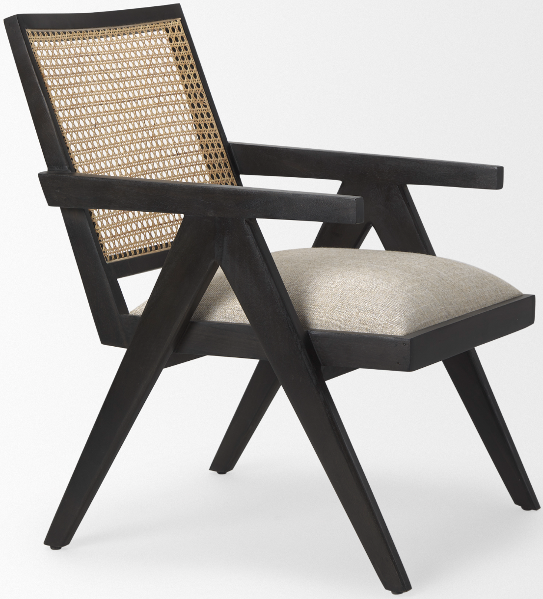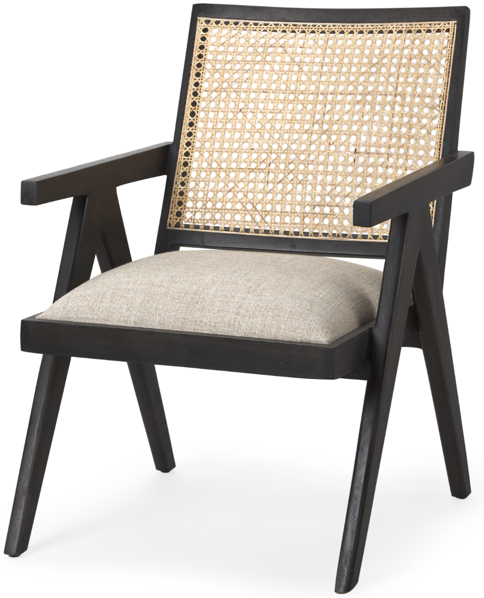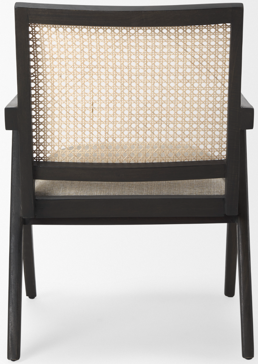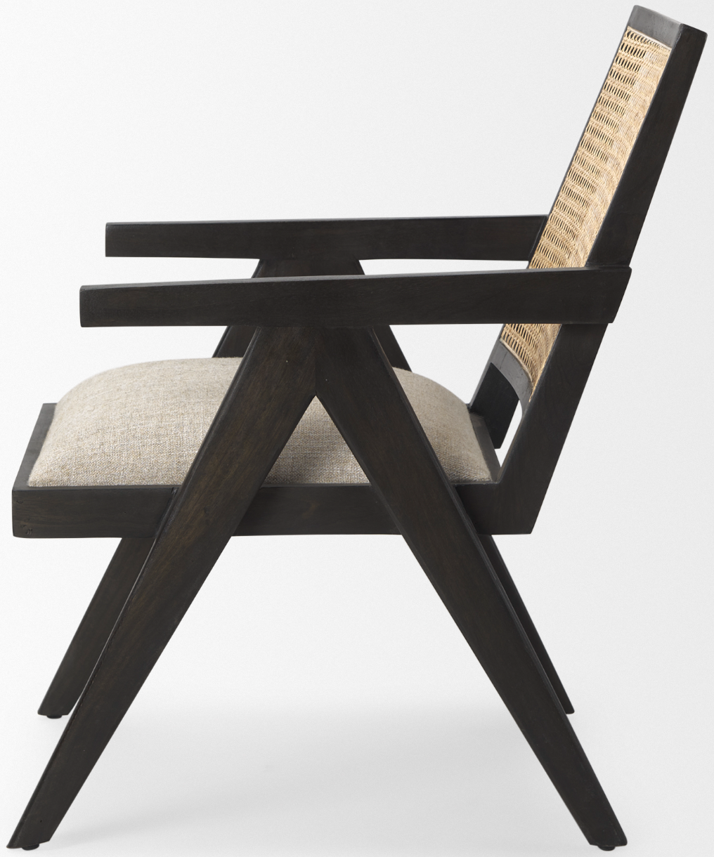 The Donna Accent Chair is ideal for those wanting to accentuate a relaxed, yet modern design aesthetic. Take note of the chair’s mid-century inspired clean lines and sleek silhouette. This chair is crafted from light brown or black finished solid wood and features a beautiful cane mesh backrest. The contemporary light beige linen fabric covered padded seat cushion and slightly reclined seatback makes it a chair that doesn't compromise on comfort.