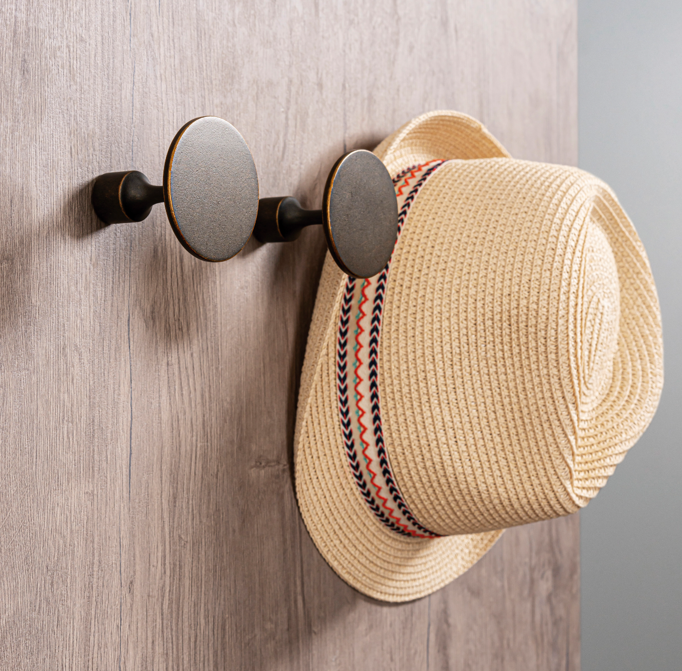 The Finley wall hook, fits perfectly well in all types of hallways, bedrooms, dressing rooms, bathrooms, kitchens and offices and a vintage touch. It is characterized by its round shape and cylindrical end which means it can be fitted discretely and easily onto walls.