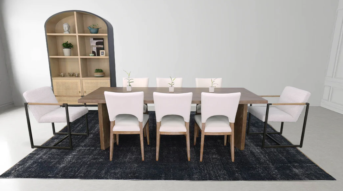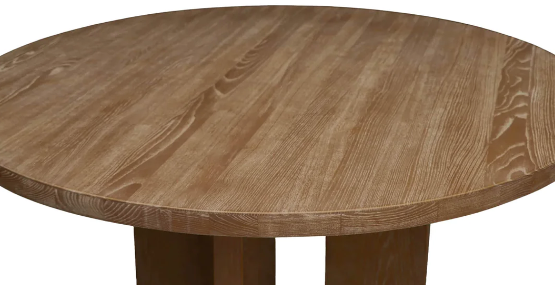 Channeling a modern mix by using natural and rustic textures, this dining table is the neutral perfect piece for any dining room. The light brown finished solid ash wood and the unique base give this table character and style.
