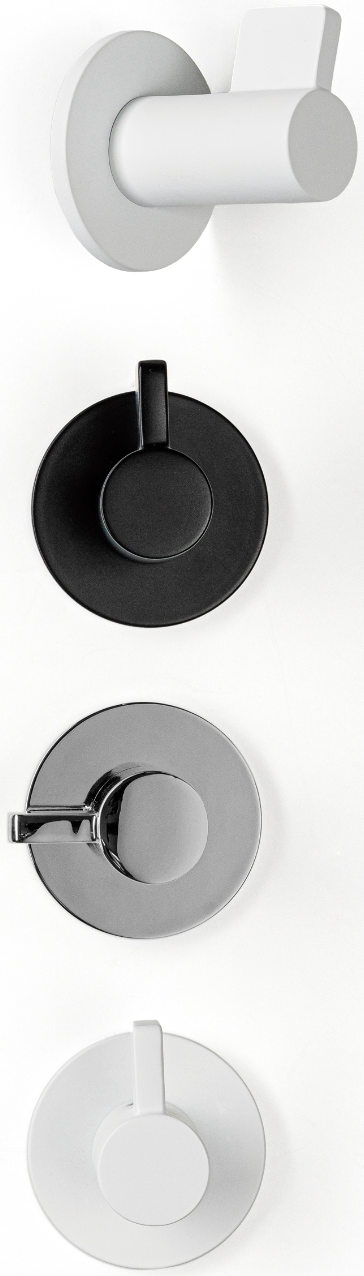 Fred is a wall hook that is characterized by its unique personality. With a markedly retro design. It’s a hanger with perspective as it changes radically depending on how you look at it from either the front or the side. It’s circular base contrasts with an adjoining part in a square shape which ensures a perfect grip on all types of garments and other accessories. Its minimalist aesthetic is perfect for bathrooms and rooms with smaller dimensions where the need to hang things on the walls is essential.