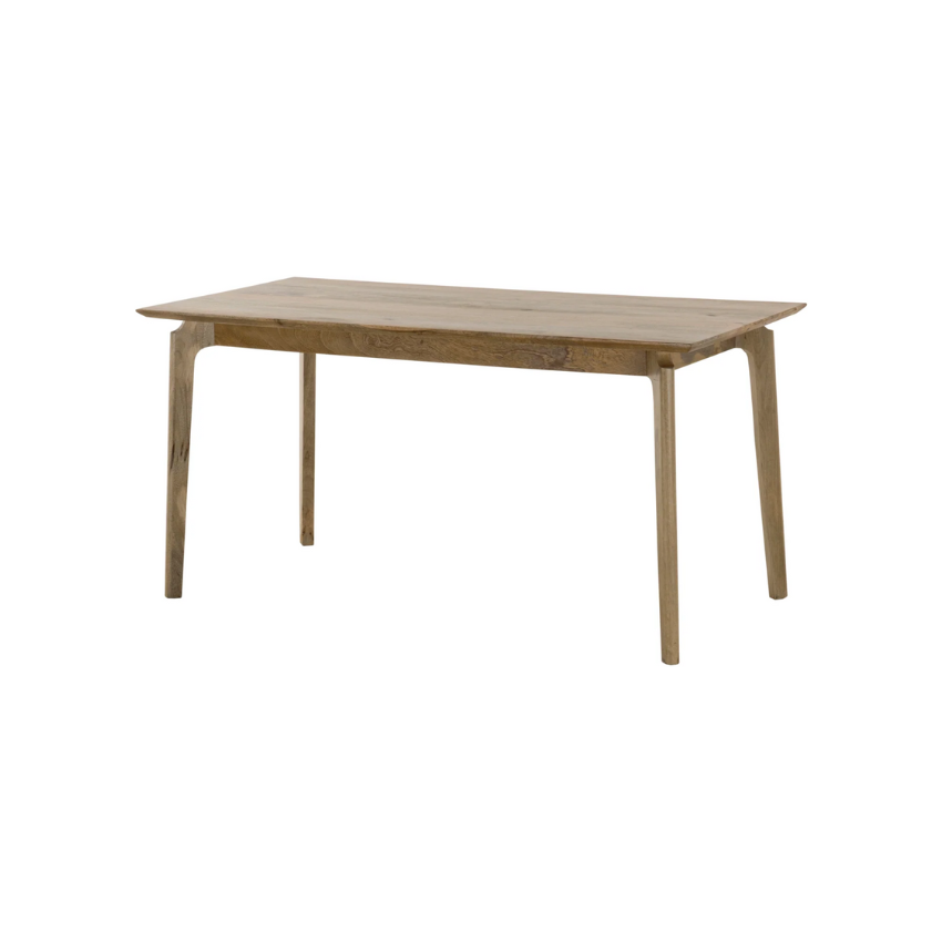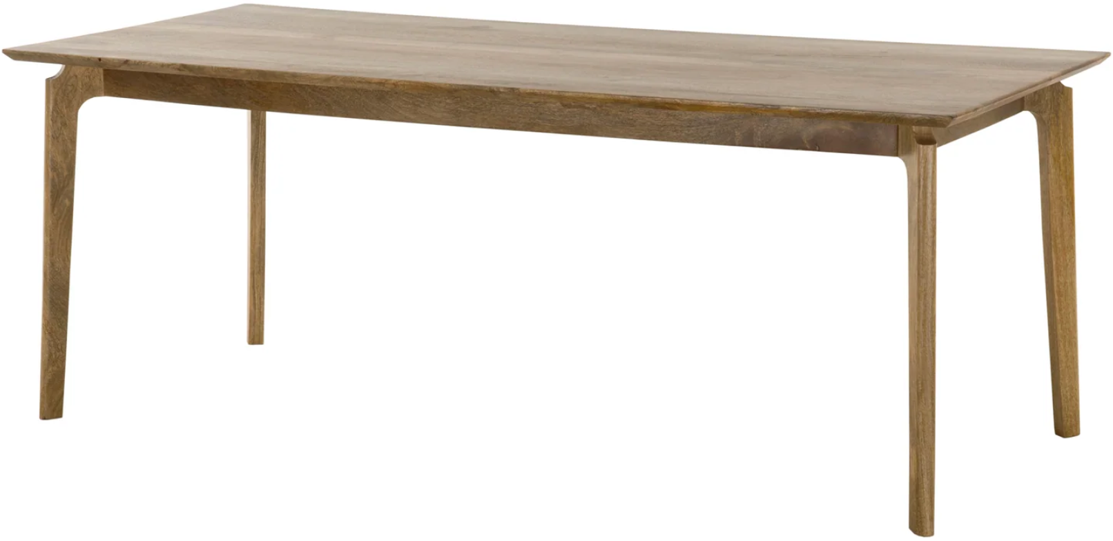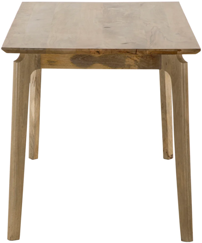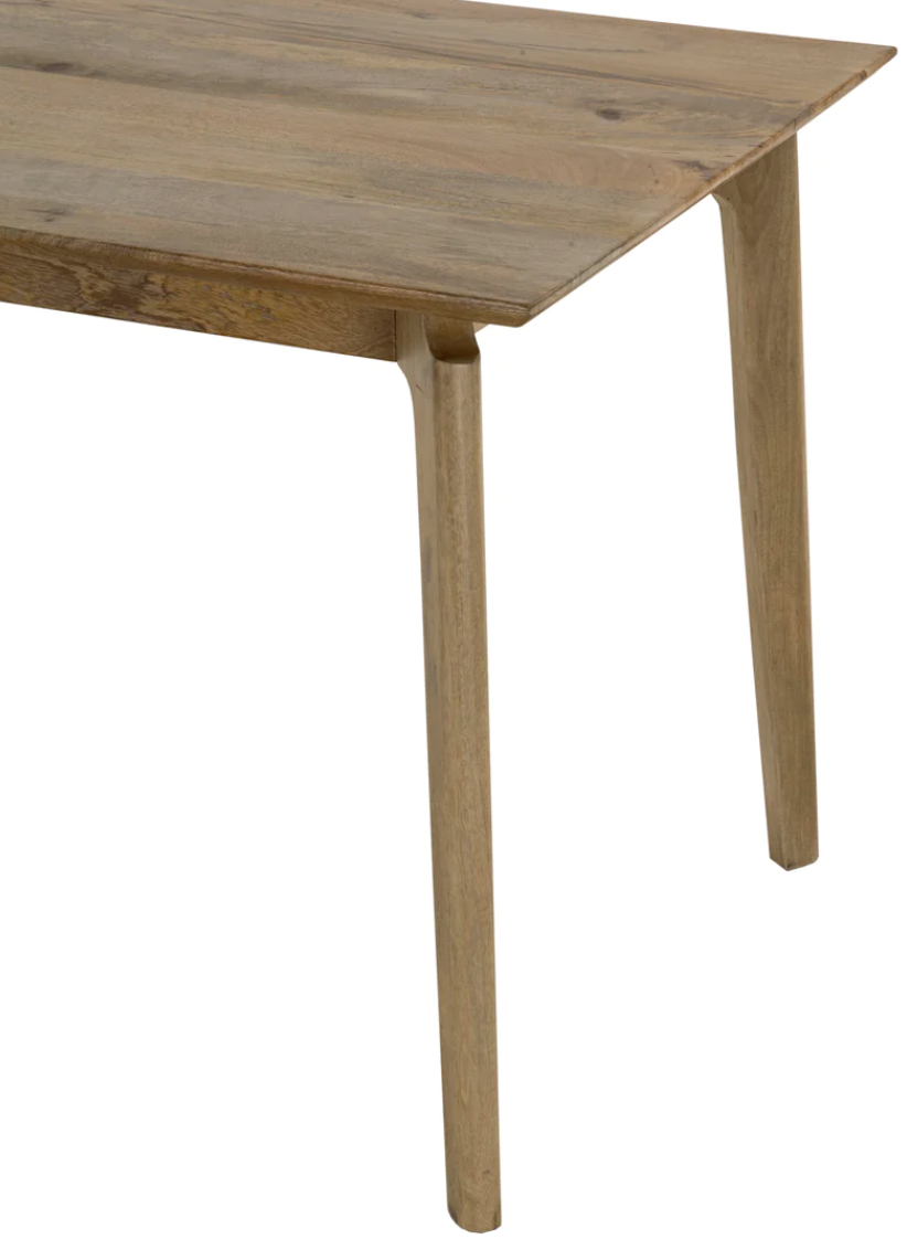 Simple yet brilliant, this mid-century modern inspired dining table combines natural mango wood with an elegant frame. The angled legs and edges give it a unique look that allows it to fit into any aesthetic or style.