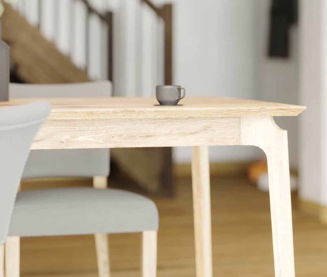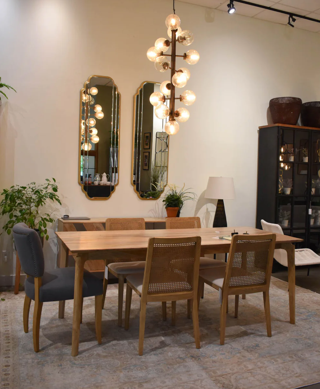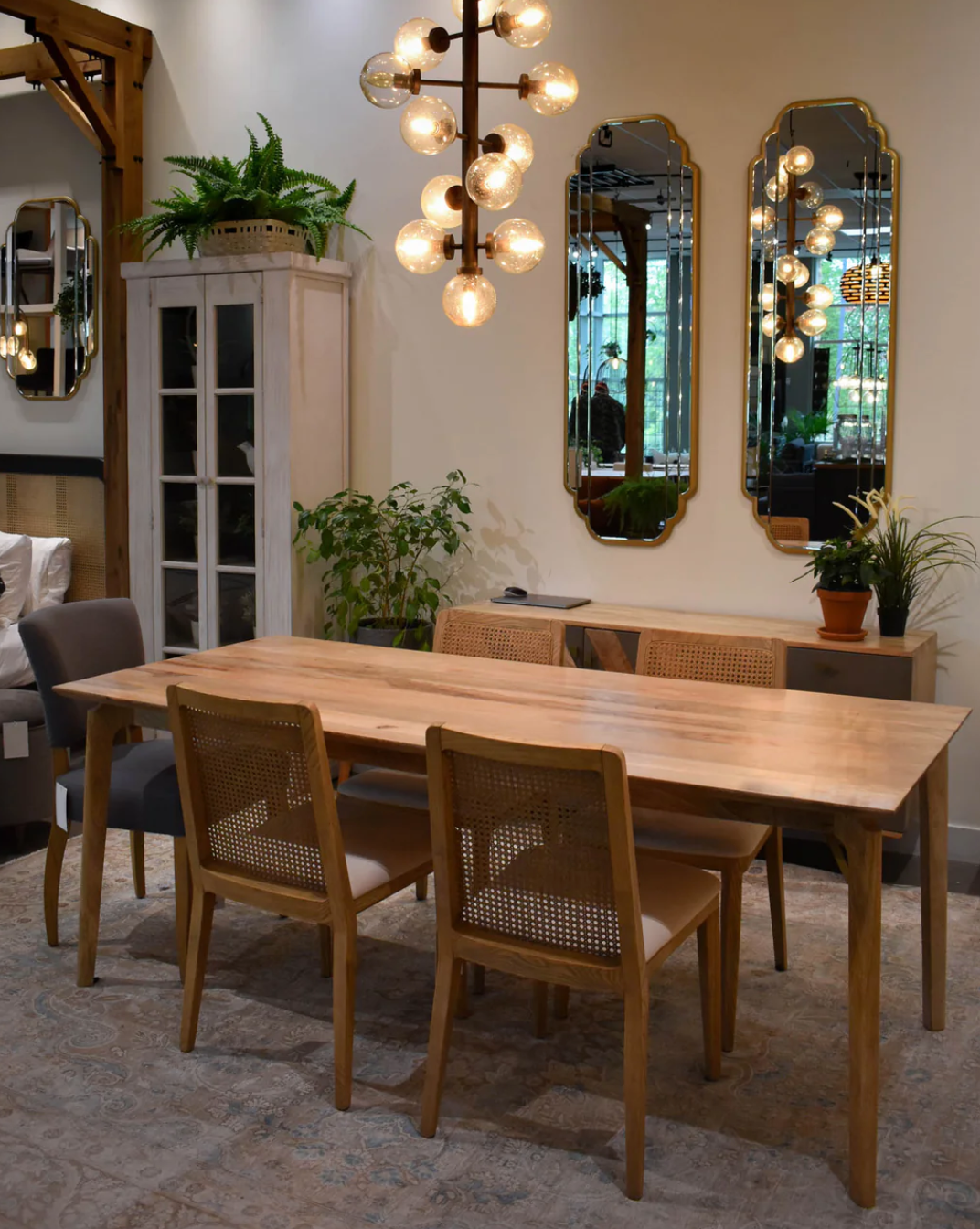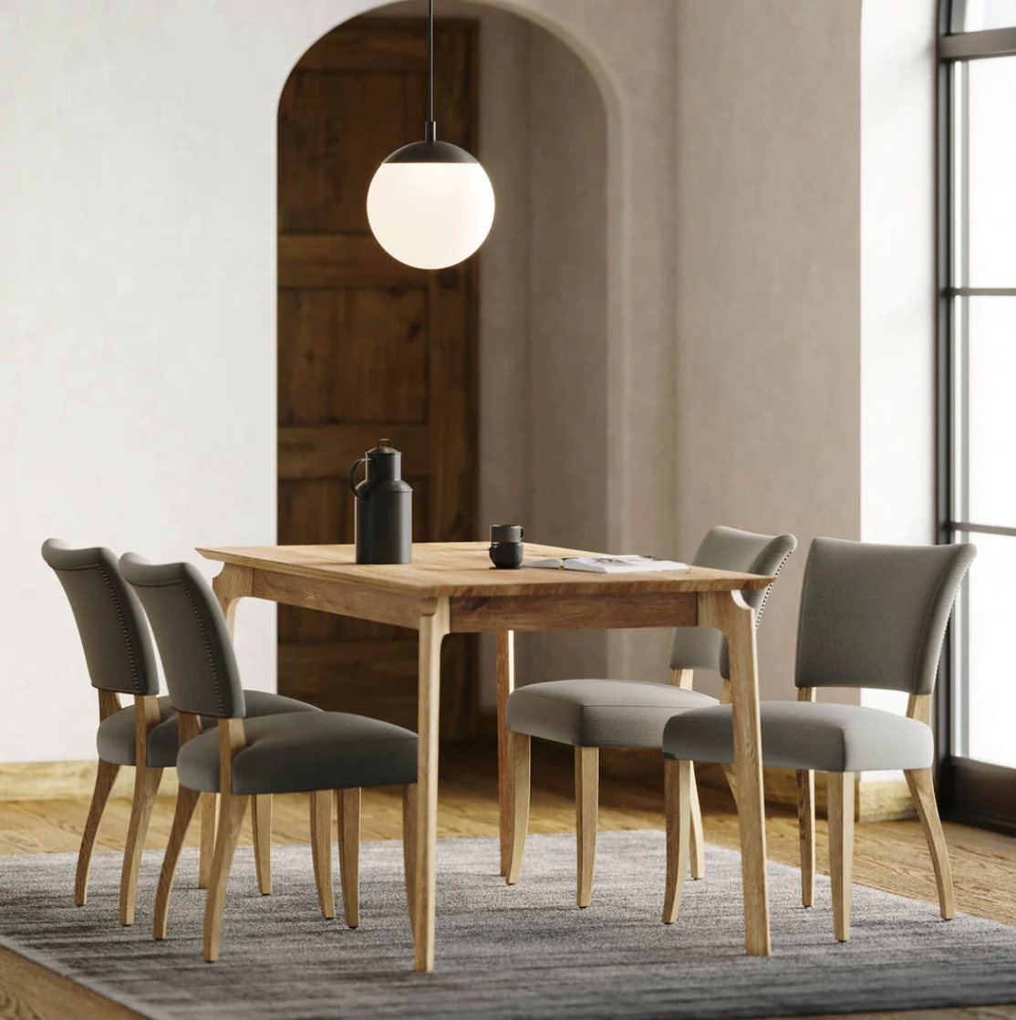 Simple yet brilliant, this mid-century modern inspired dining table combines natural mango wood with an elegant frame. The angled legs and edges give it a unique look that allows it to fit into any aesthetic or style.
