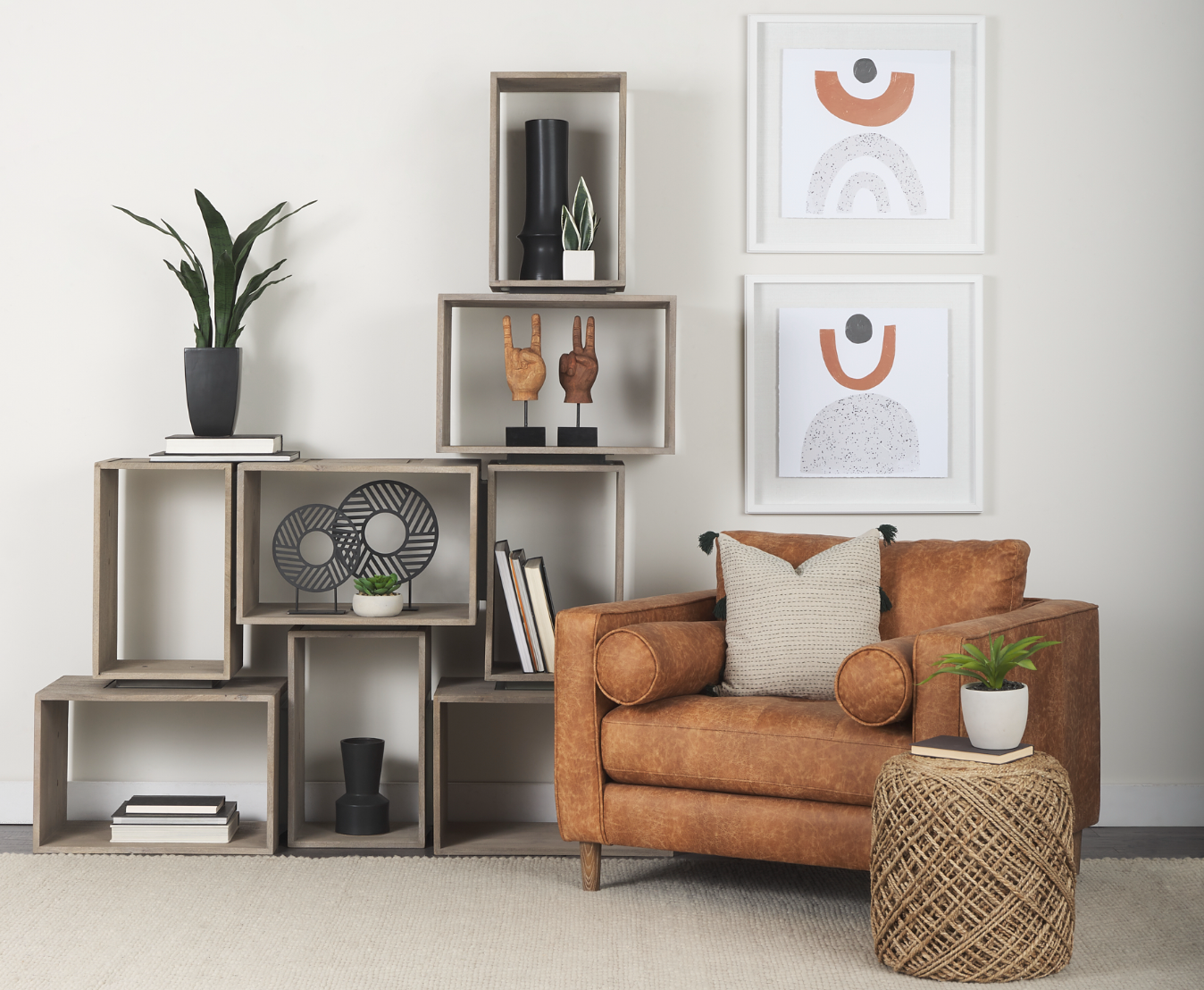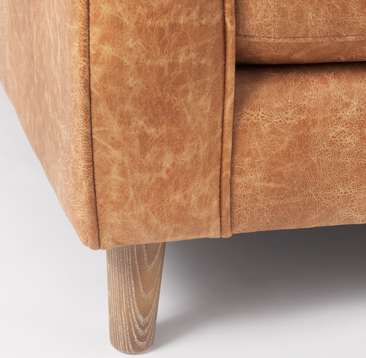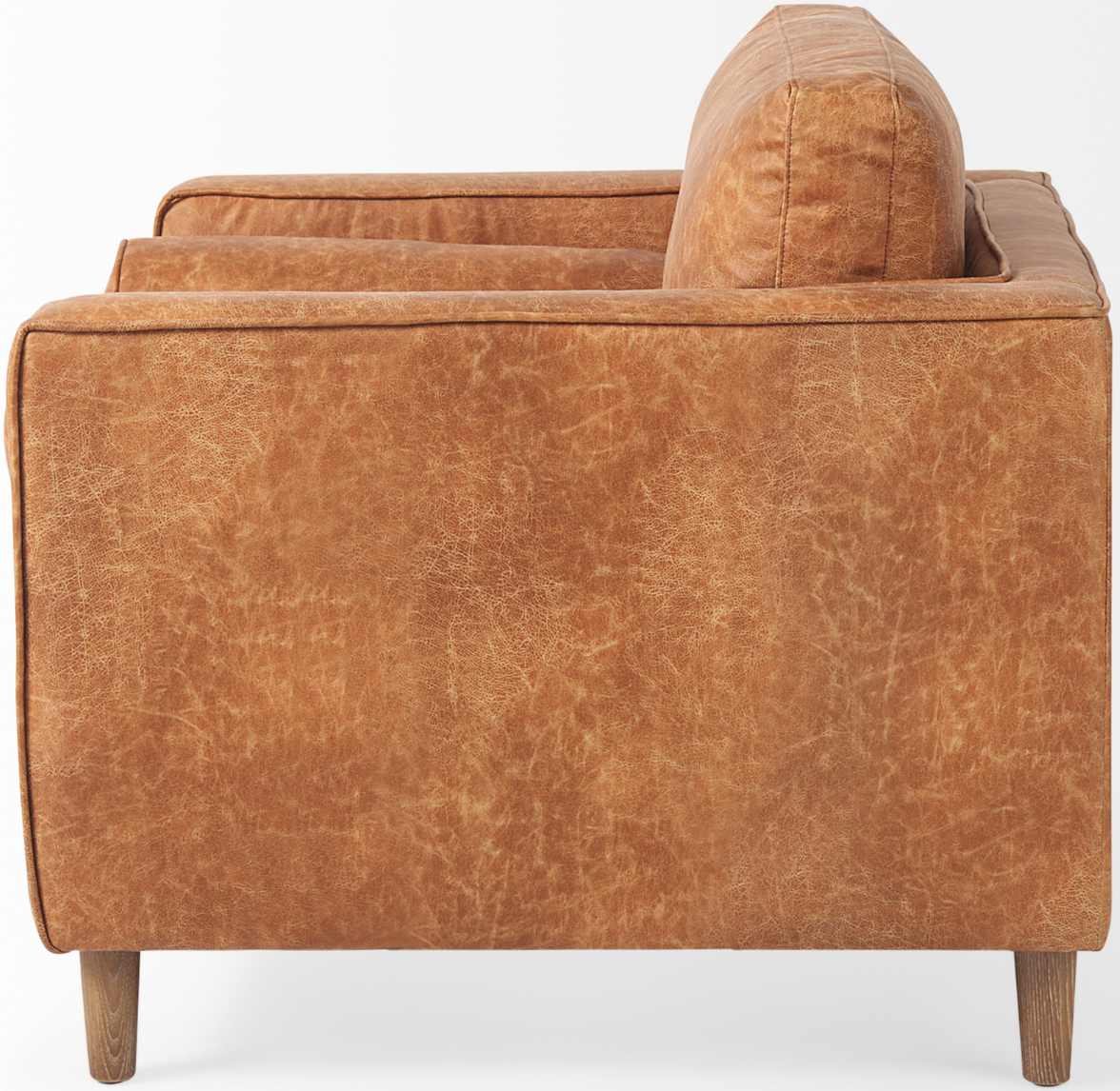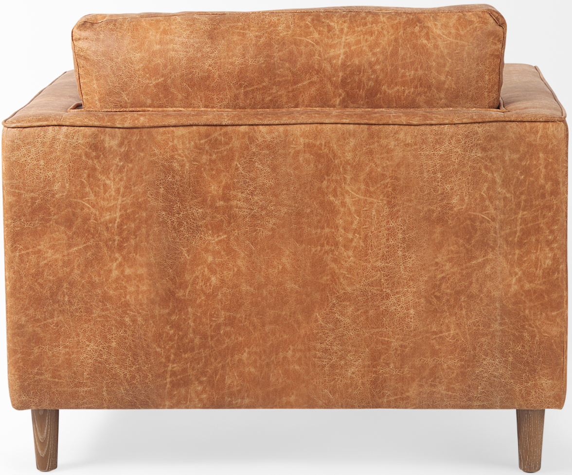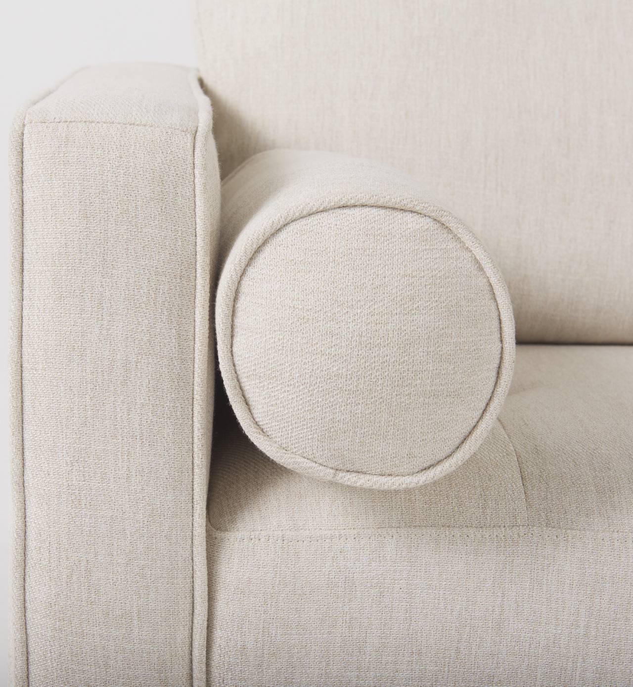 The Loretta is wrapped in faux cognac brown leather or cream upholstered fabric, and offers unparalleled comfort and is guaranteed to have you lounging for hours. The Loretta is braced by four solid wood legs that ensure exceptional stability and sturdiness and two matching bolster pillows. The Loretta arm chair can be paired with the Loretta sofa to complete the look, making any living room look put together and luxurious. The Loretta looks gorgeous in any modern space and setting and is guaranteed to add a touch of luxury to your space without compromising on comfort.