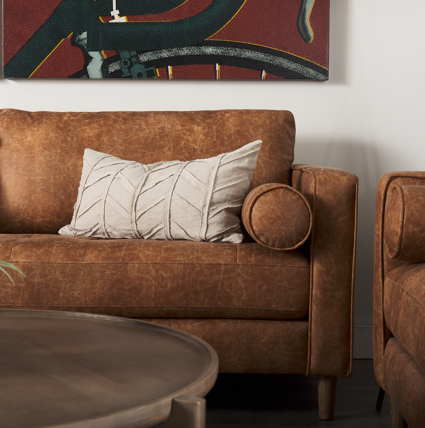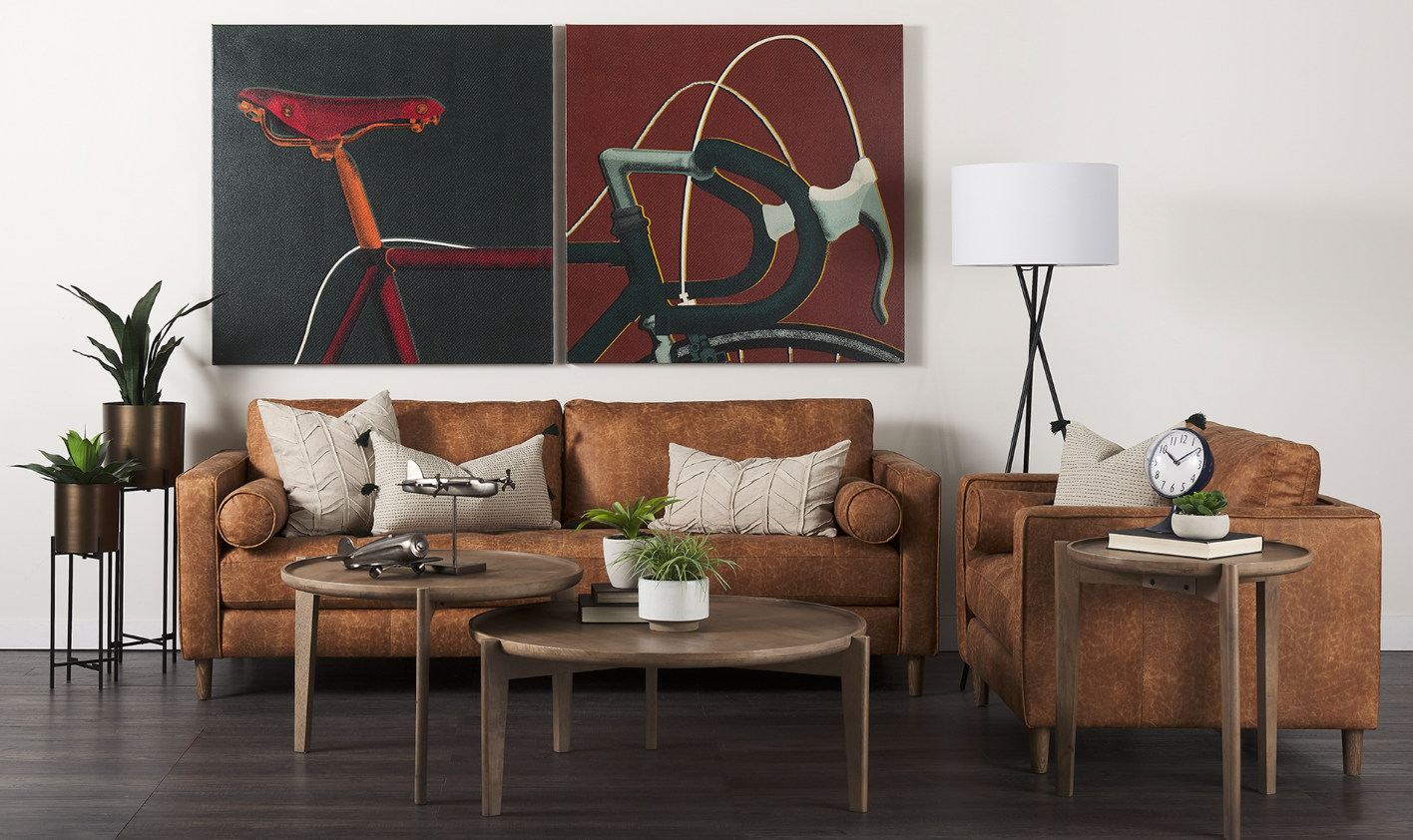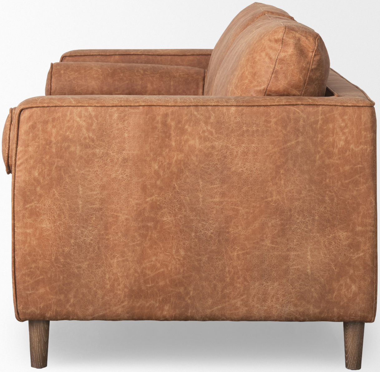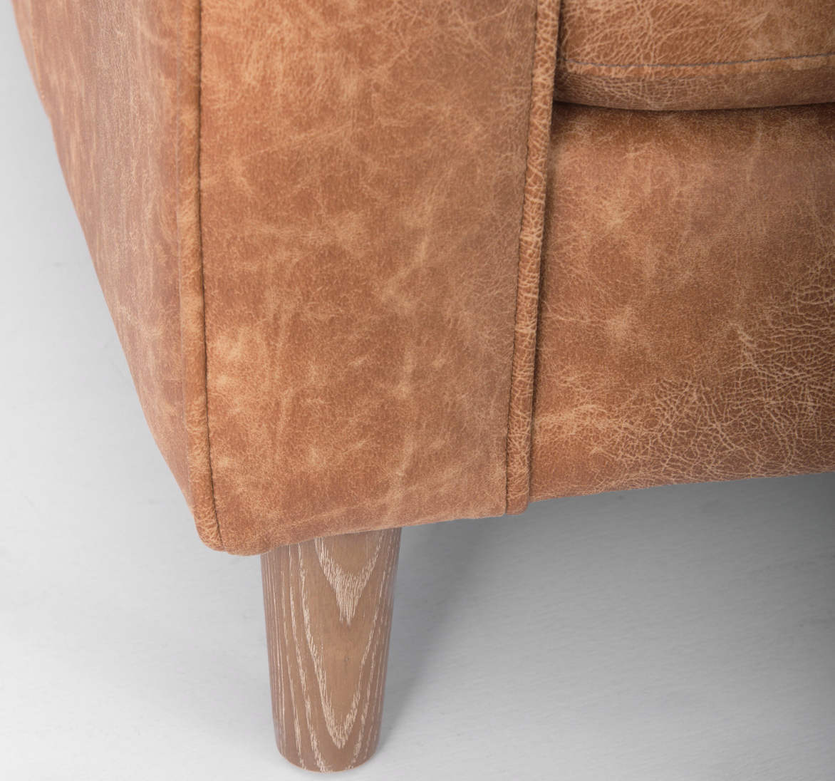 The Loretta is wrapped in faux cognac brown leather or cream upholstered fabric, and offers unparalleled comfort and is guaranteed to have you lounging for hours. The sofa is finished with medium brown wooden legs, and two matching bolster pillows. The Loretta is braced by four solid wood legs that ensure exceptional stability and sturdiness. The Loretta looks gorgeous in any modern space and setting and is guaranteed to add a touch of luxury to your space without compromising on comfort.