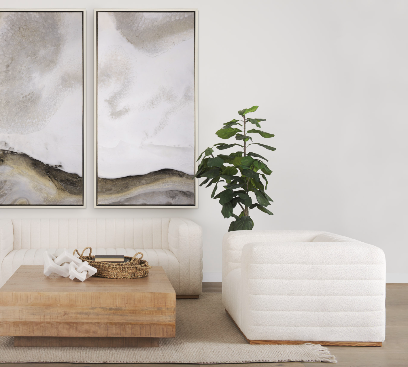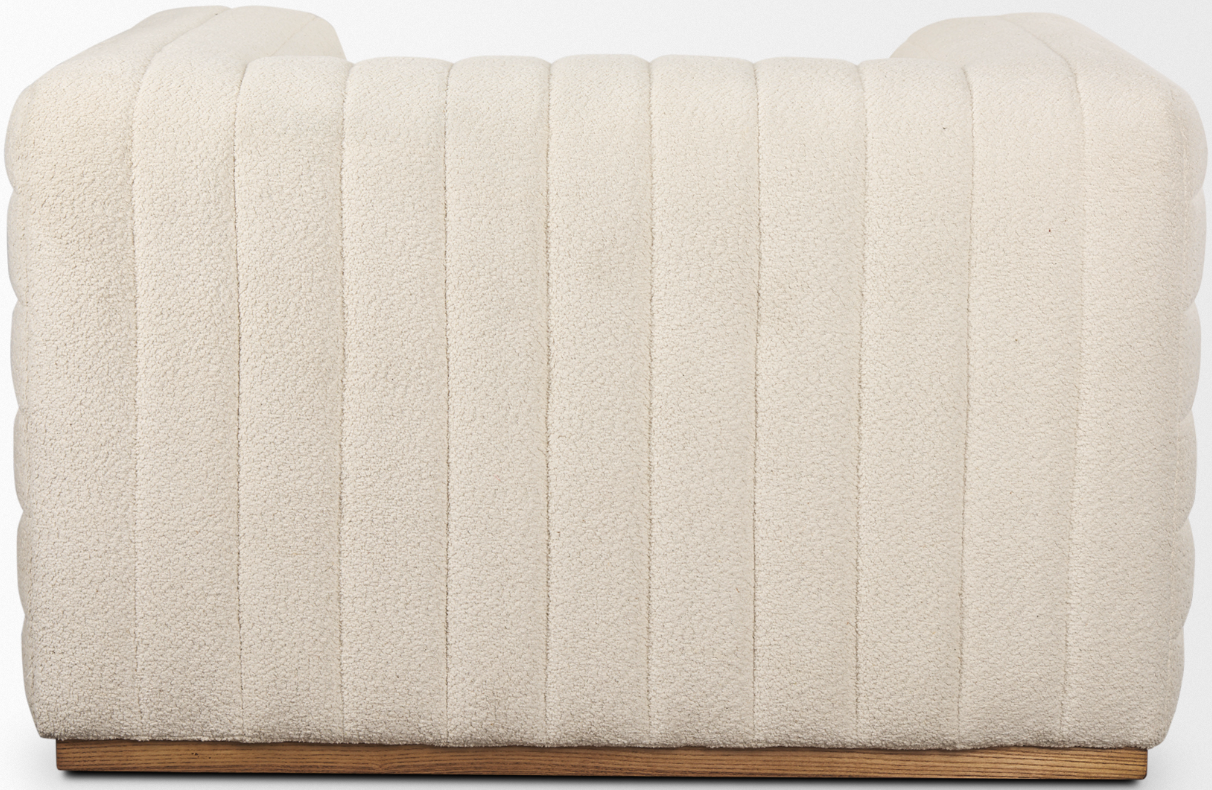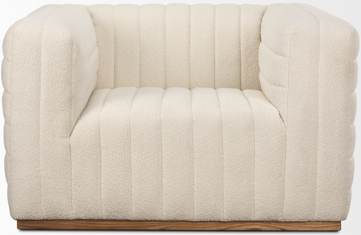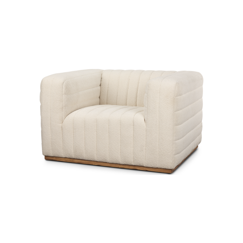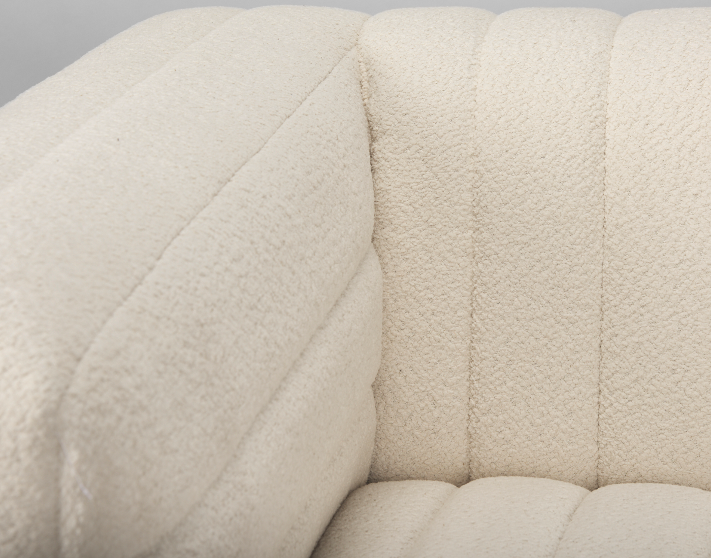 The Ricciardo Accent Chair is a luxe arm chair in an elegant cream boucle fabric. The channels of boucle create a ribbed effect that presents a magnificent textural aesthetic on all sides. For a chic twist, it is fitted with slim square wood feet that ground the chair. This meticulously designed collection will make a bold statement for years to come.
