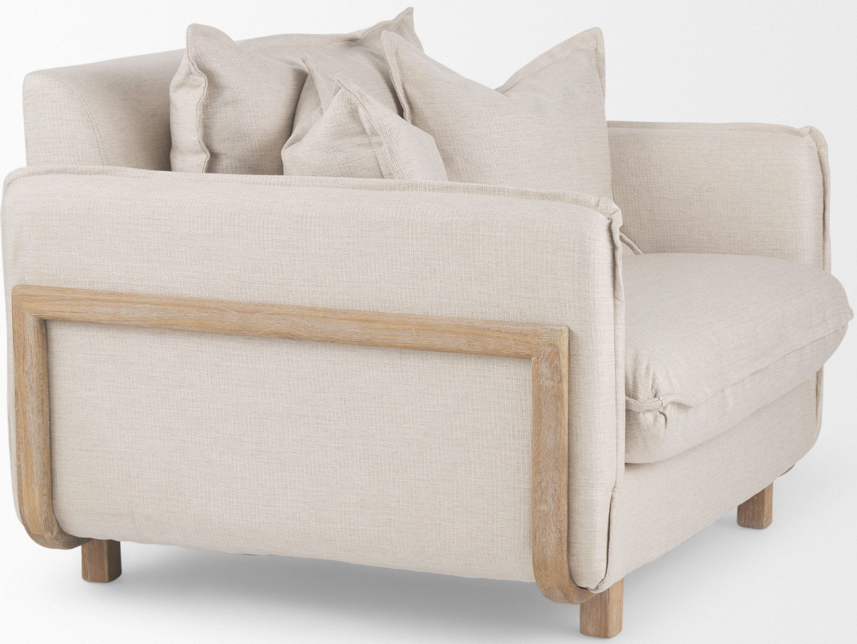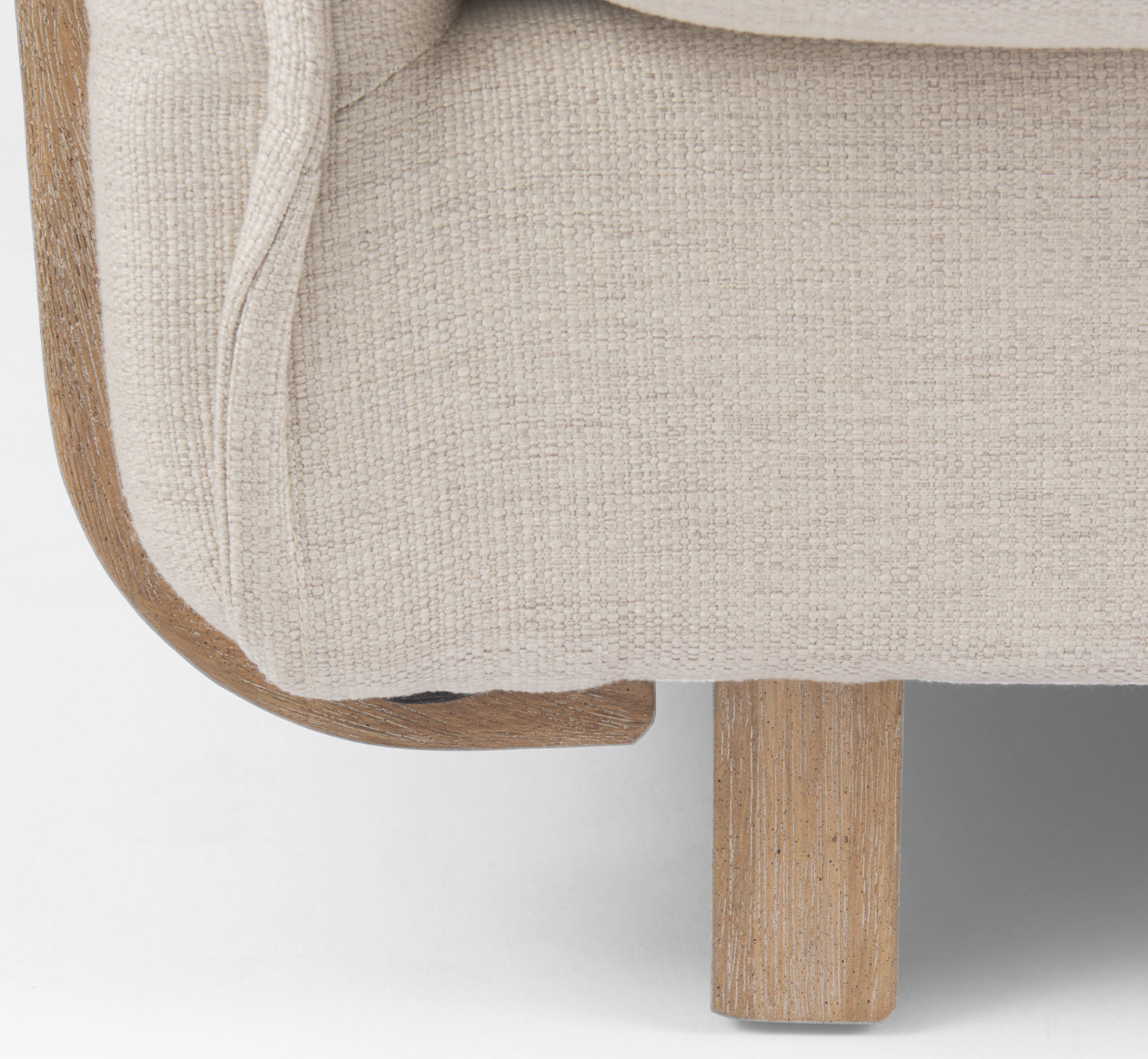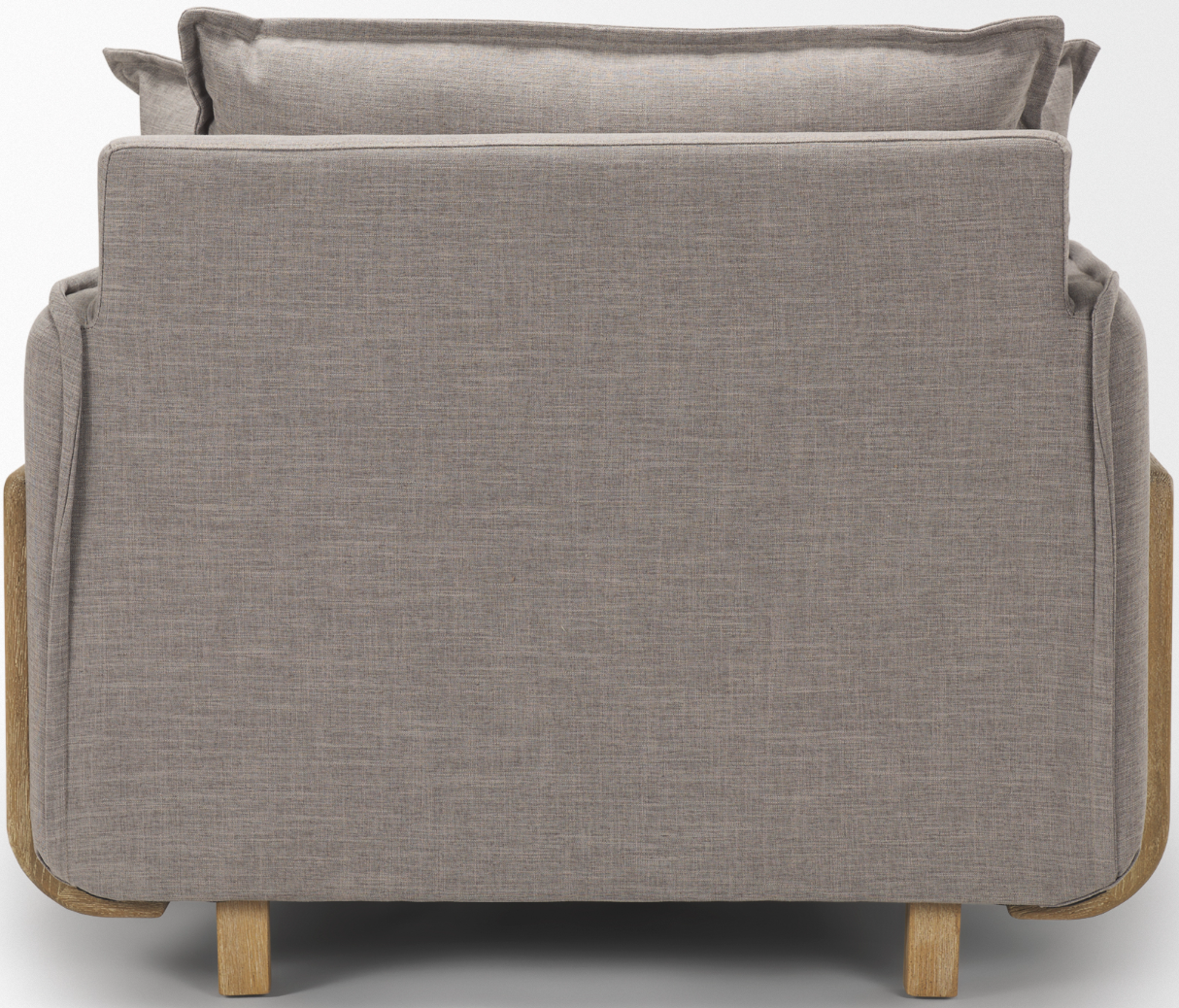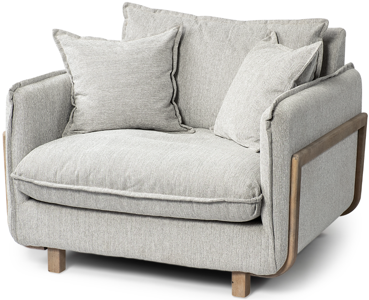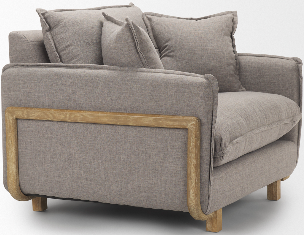 Crafted from solid wood, the Roy accent chair is a spectacular, upholstered armchair that is exceptionally comfortable. Featuring a durable and sturdy four-legged mango wood frame finished in a natural brown polish, the Roy boasts of plush, fabric wrapped seating that is not only comfortable but also visually complements the wooden components of this ritzy sofa. Equipped with a detachable back cushion and two matching throw pillows that add to its luxurious seating experience, the Roy makes for the perfect addition to modern, farmhouse and coastal design styles.