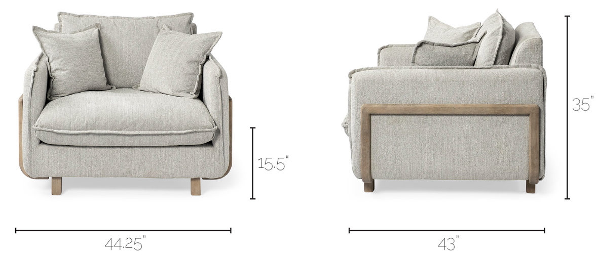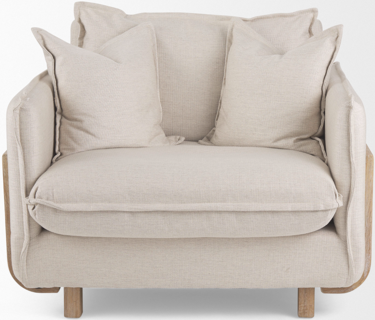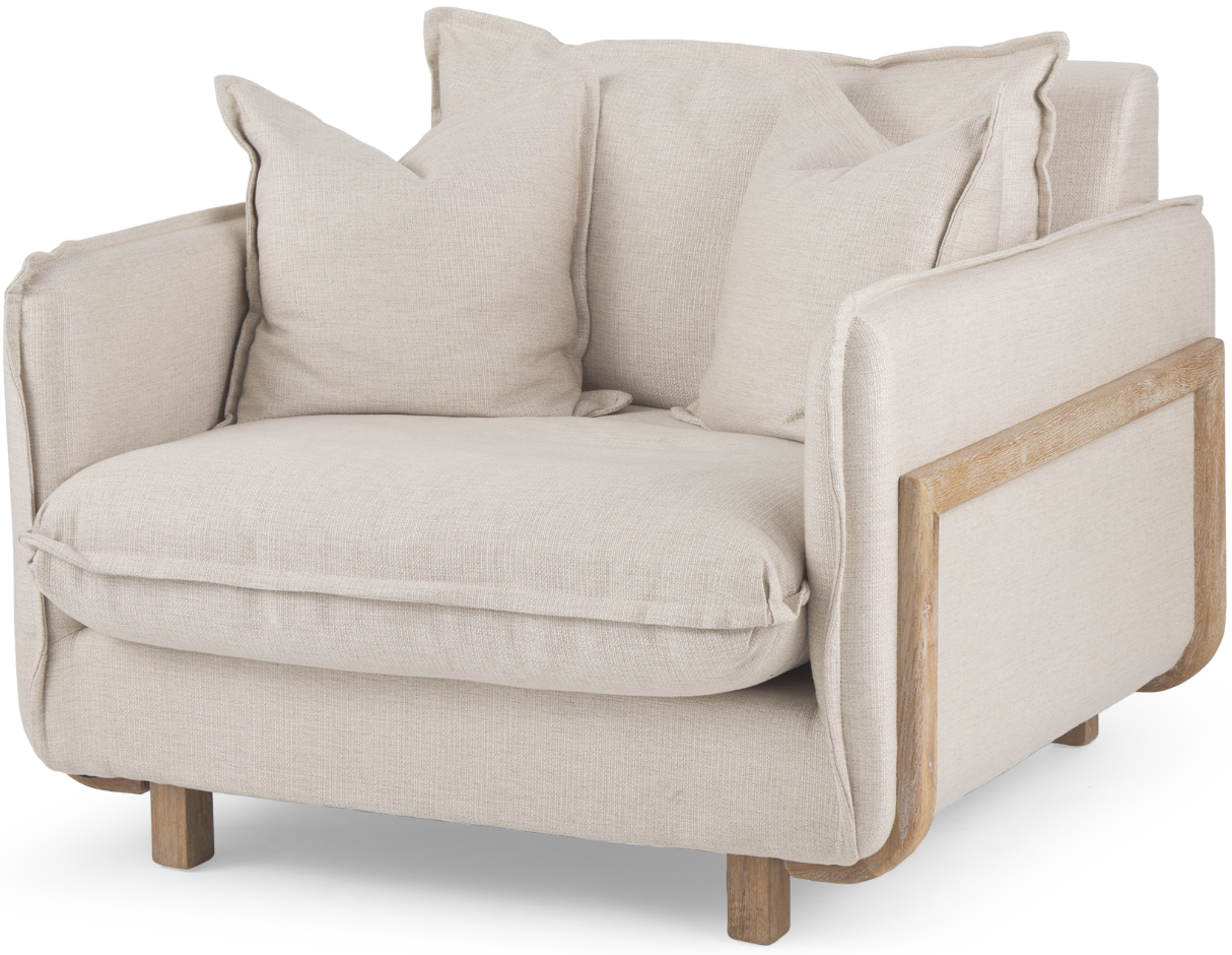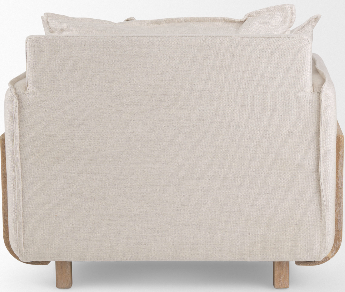 Crafted from solid wood, the Roy accent chair is a spectacular, upholstered armchair that is exceptionally comfortable. Featuring a durable and sturdy four-legged mango wood frame finished in a natural brown polish, the Roy boasts of plush, fabric wrapped seating that is not only comfortable but also visually complements the wooden components of this ritzy sofa. Equipped with a detachable back cushion and two matching throw pillows that add to its luxurious seating experience, the Roy makes for the perfect addition to modern, farmhouse and coastal design styles.