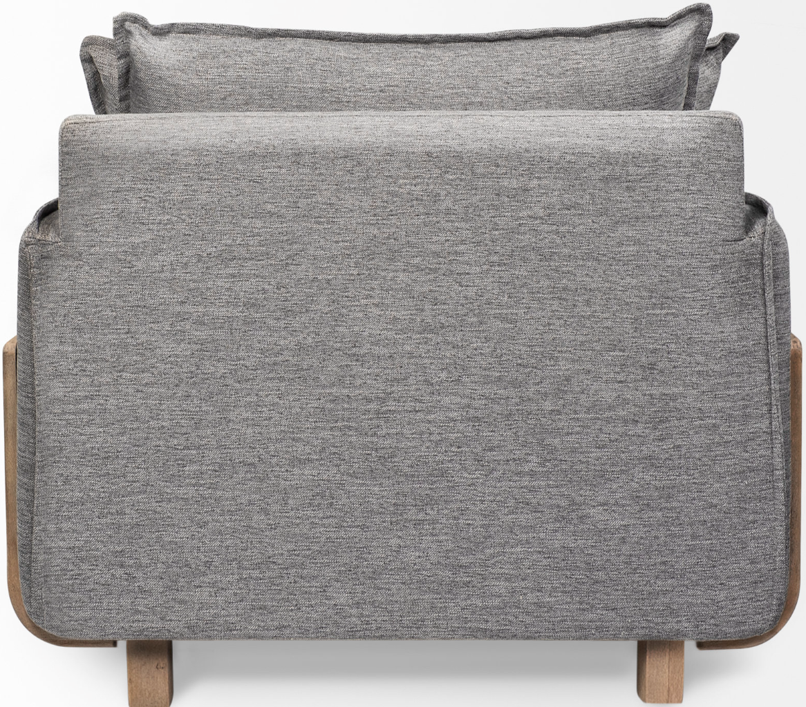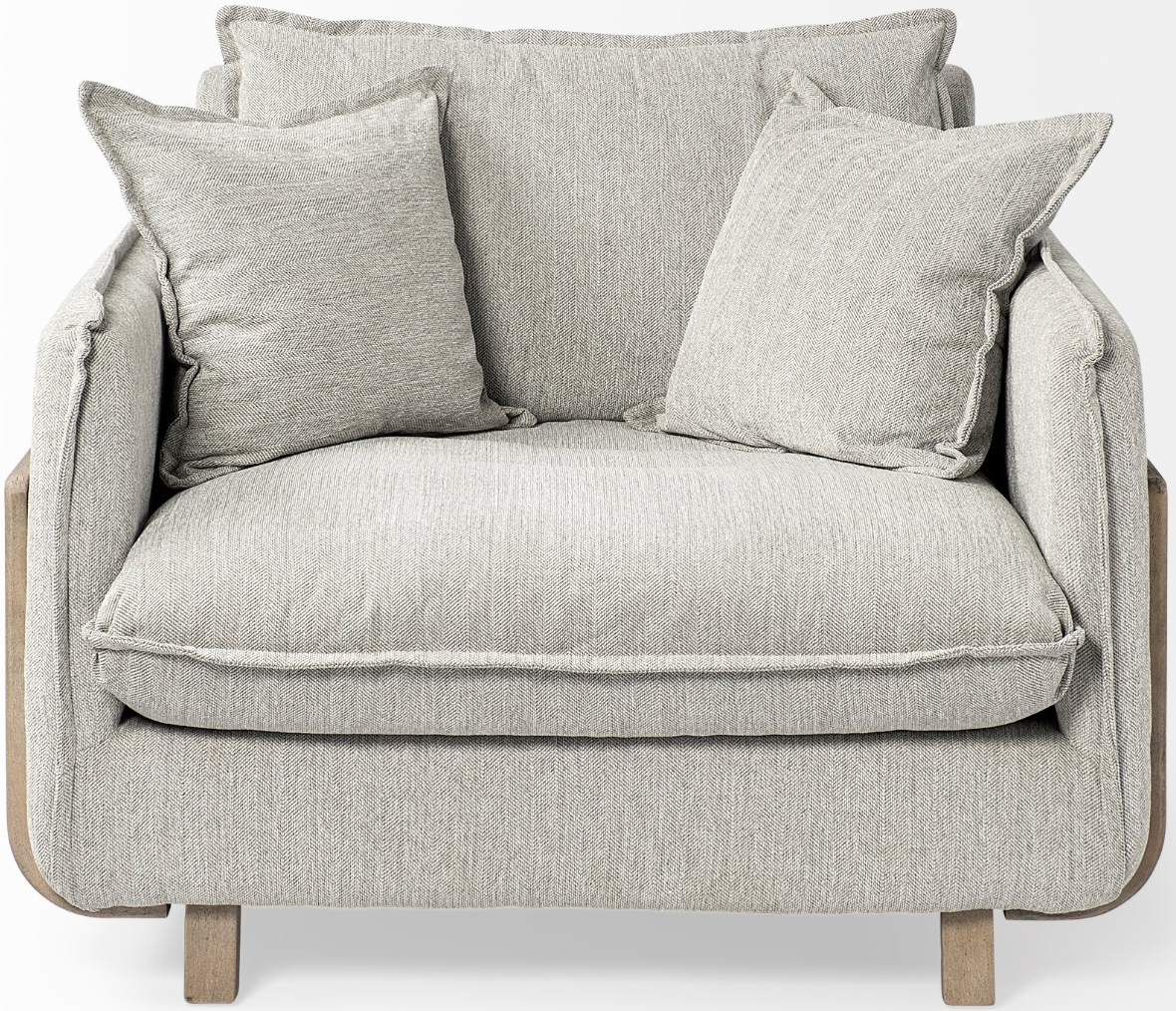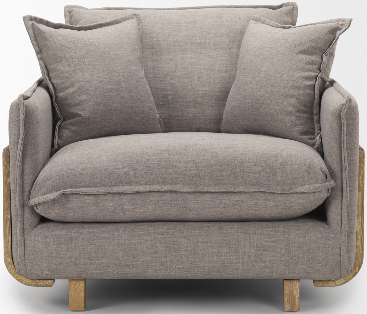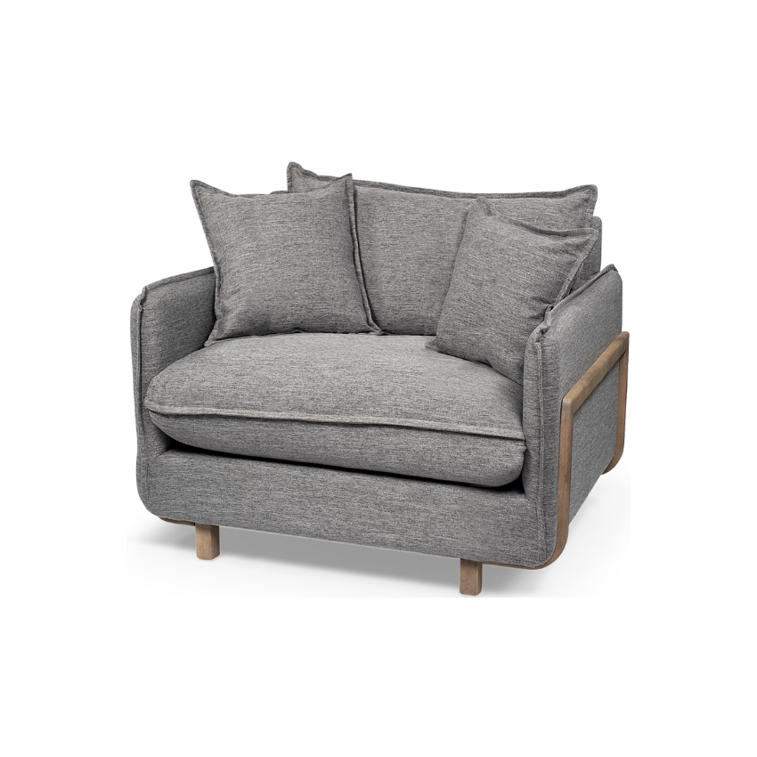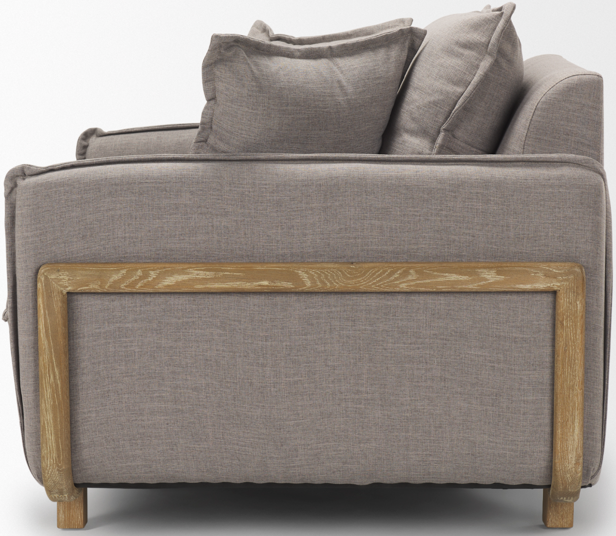 Crafted from solid wood, the Roy accent chair is a spectacular, upholstered armchair that is exceptionally comfortable. Featuring a durable and sturdy four-legged mango wood frame finished in a natural brown polish, the Roy boasts of plush, fabric wrapped seating that is not only comfortable but also visually complements the wooden components of this ritzy sofa. Equipped with a detachable back cushion and two matching throw pillows that add to its luxurious seating experience, the Roy makes for the perfect addition to modern, farmhouse and coastal design styles.