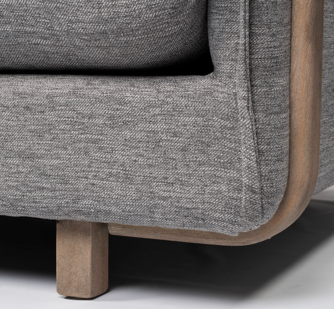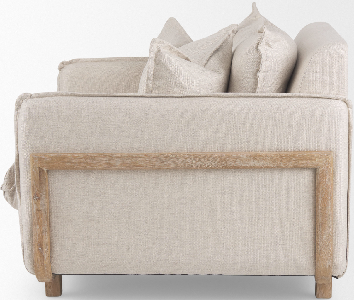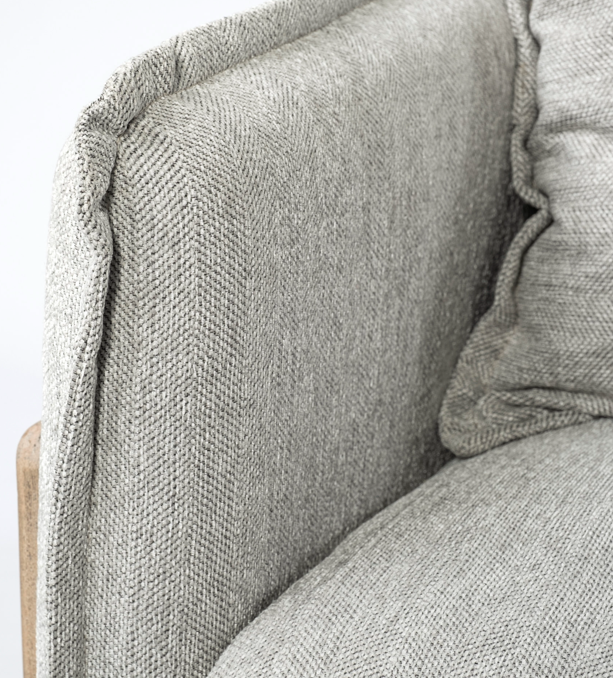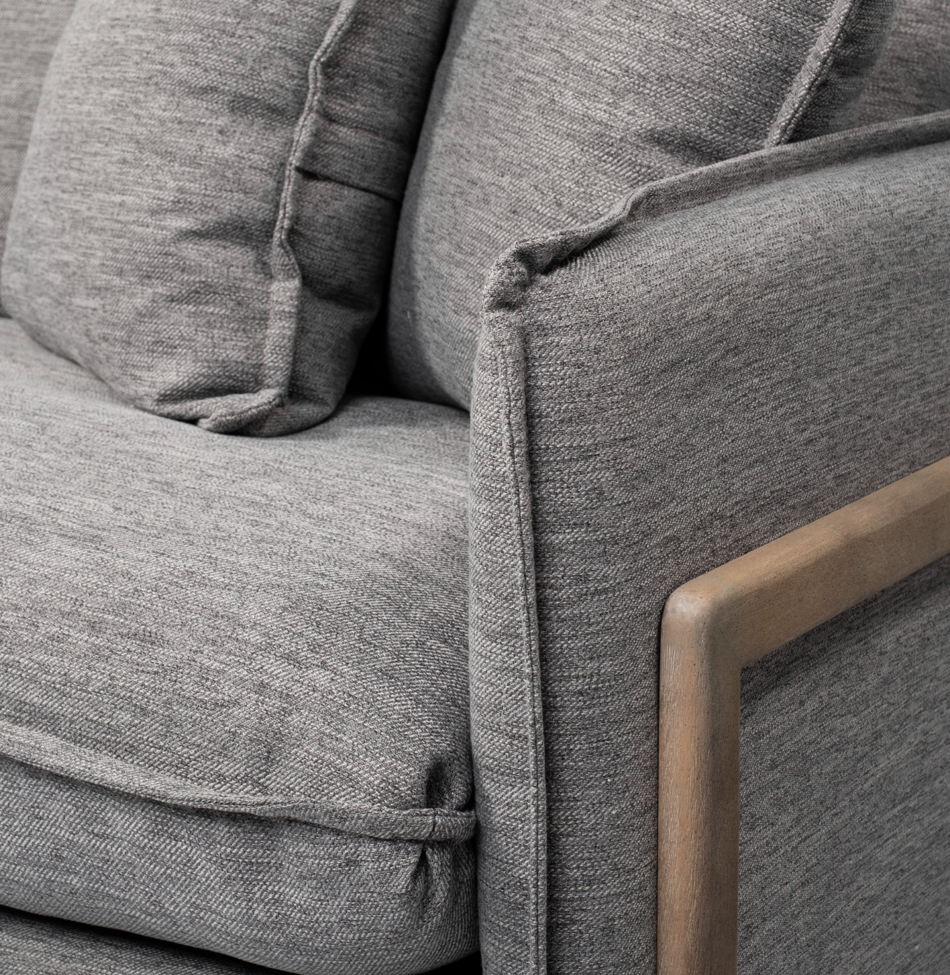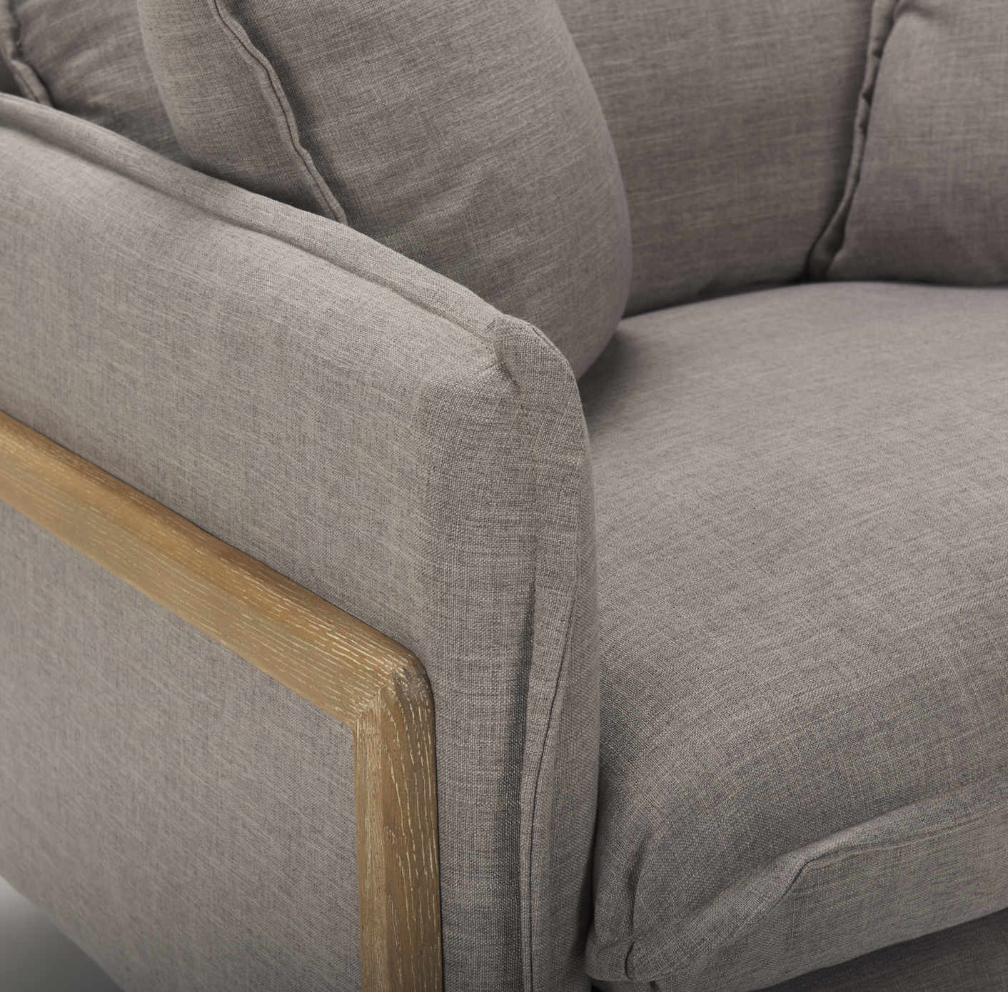 Crafted from solid wood, the Roy accent chair is a spectacular, upholstered armchair that is exceptionally comfortable. Featuring a durable and sturdy four-legged mango wood frame finished in a natural brown polish, the Roy boasts of plush, fabric wrapped seating that is not only comfortable but also visually complements the wooden components of this ritzy sofa. Equipped with a detachable back cushion and two matching throw pillows that add to its luxurious seating experience, the Roy makes for the perfect addition to modern, farmhouse and coastal design styles.