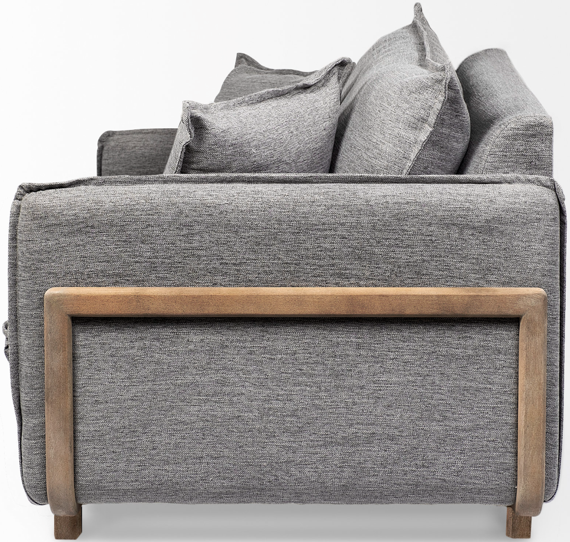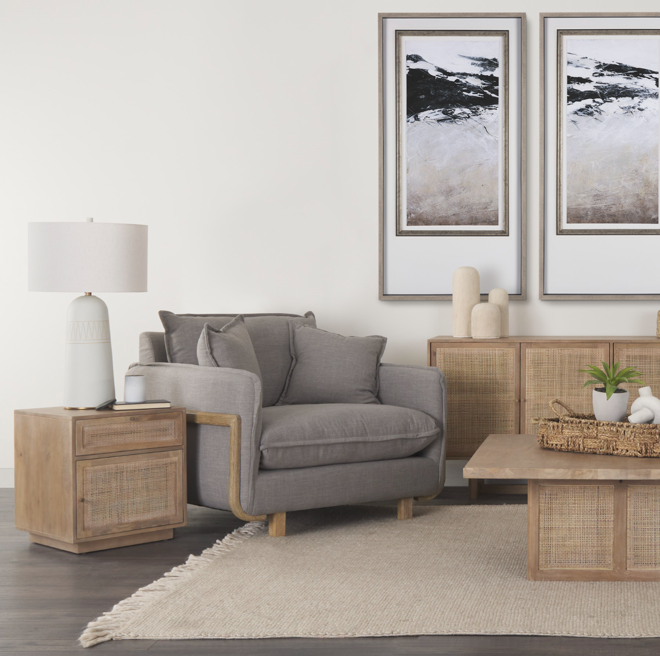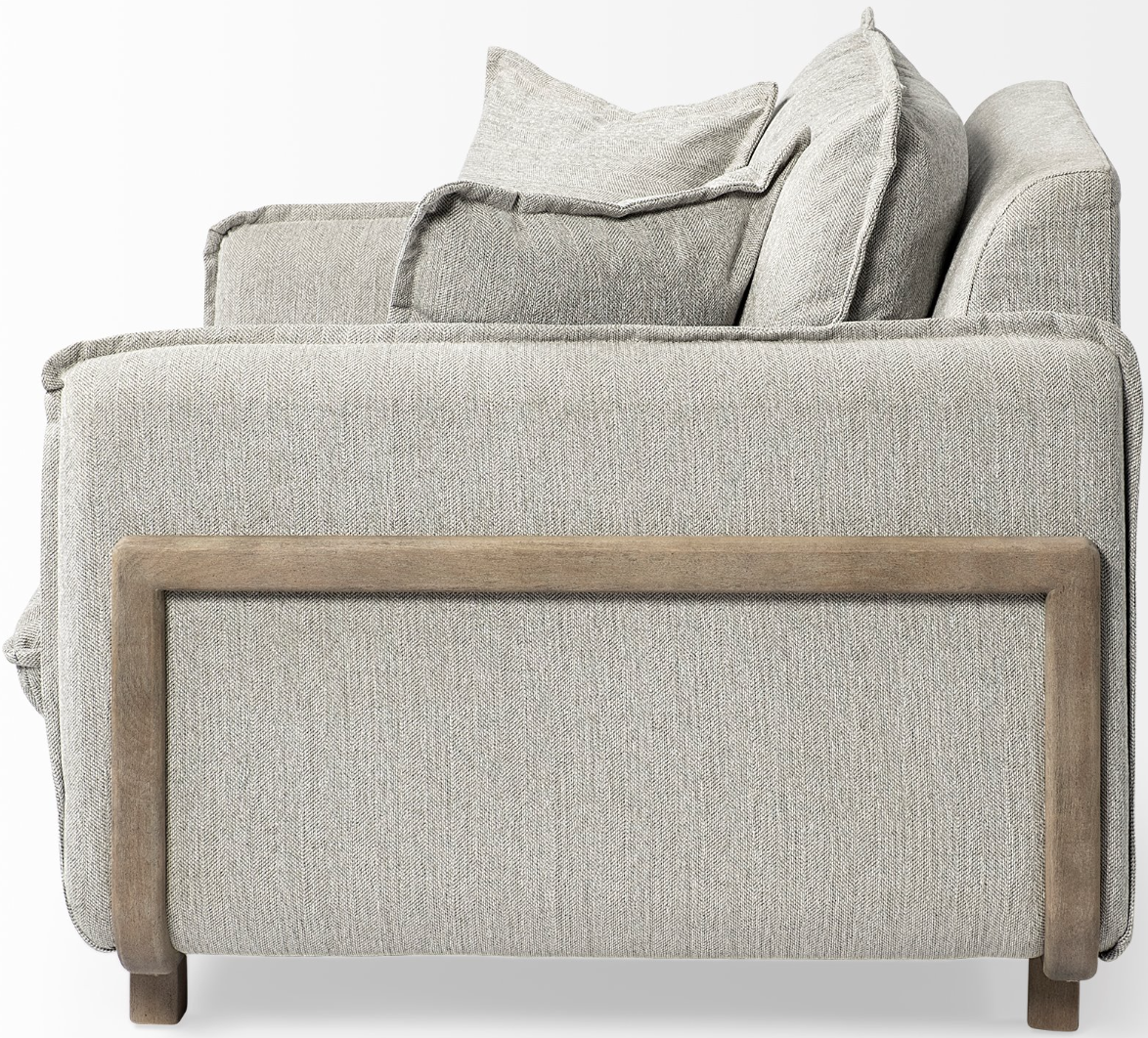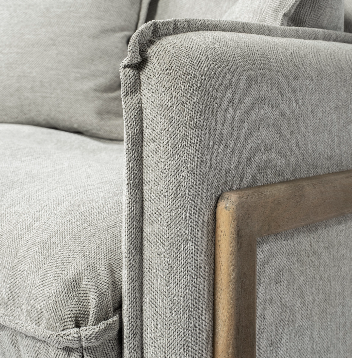Crafted from solid wood, the Roy accent chair is a spectacular, upholstered armchair that is exceptionally comfortable. Featuring a durable and sturdy four-legged mango wood frame finished in a natural brown polish, the Roy boasts of plush, fabric wrapped seating that is not only comfortable but also visually complements the wooden components of this ritzy sofa. Equipped with a detachable back cushion and two matching throw pillows that add to its luxurious seating experience, the Roy makes for the perfect addition to modern, farmhouse and coastal design styles.