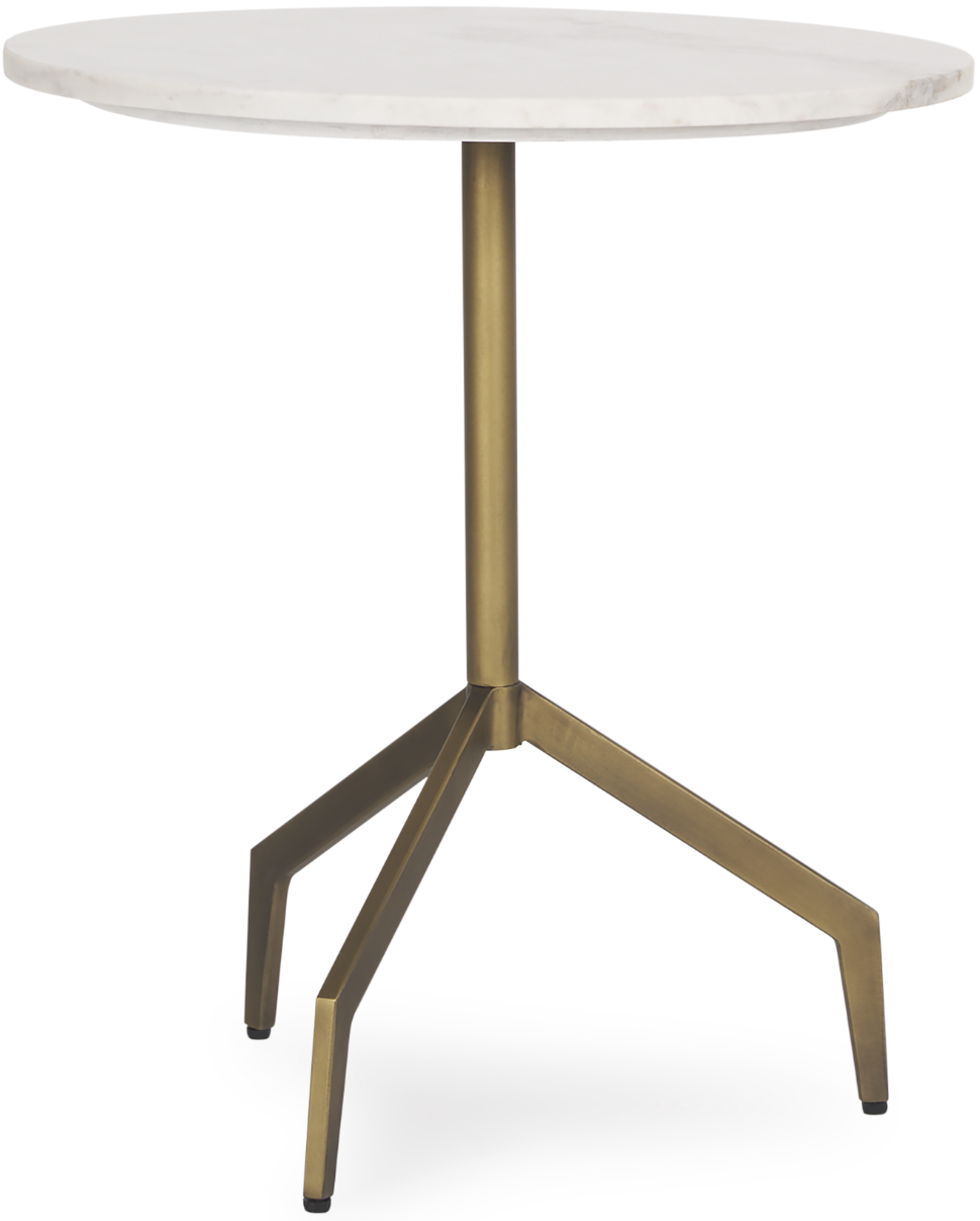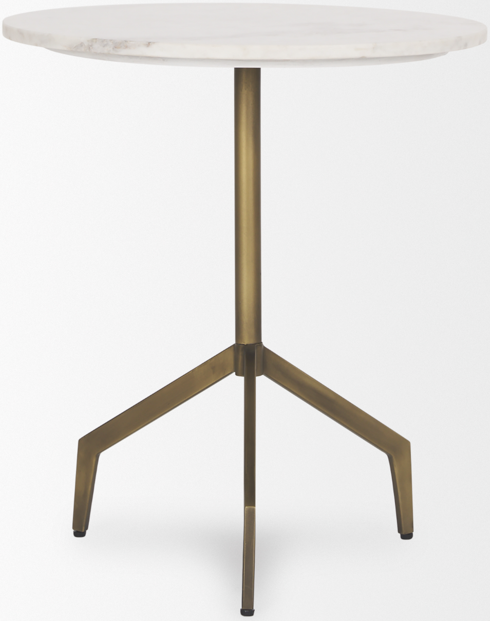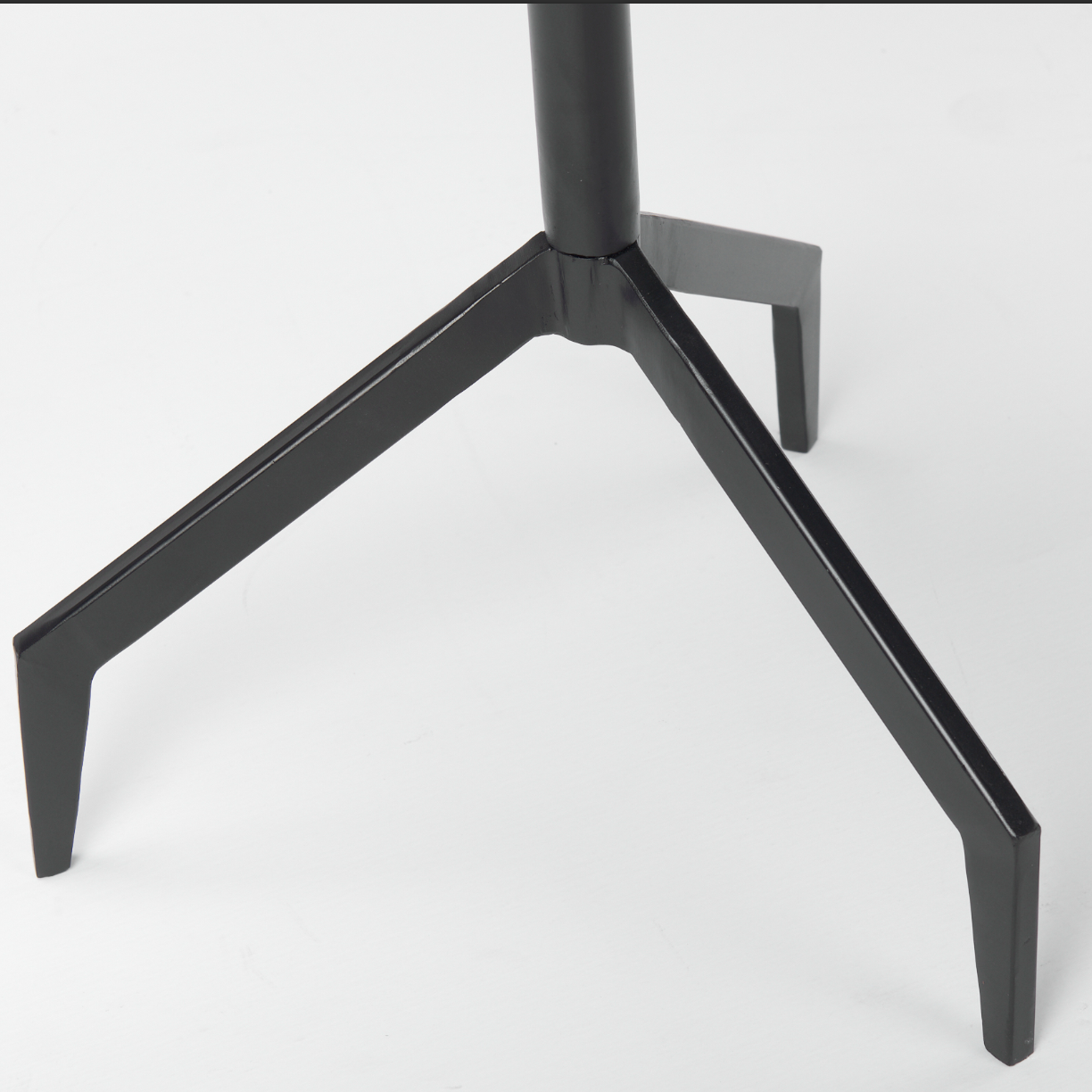 The Serre Side Table features a beautiful, smooth round white marble table top with natural veining. The base is made of matte black or gold finished metal in a unique, tri-pod design that lends a chic edginess to the timeless design. The neutral colour palette allows this table to seamlessly be integrated into various applications and design styles.