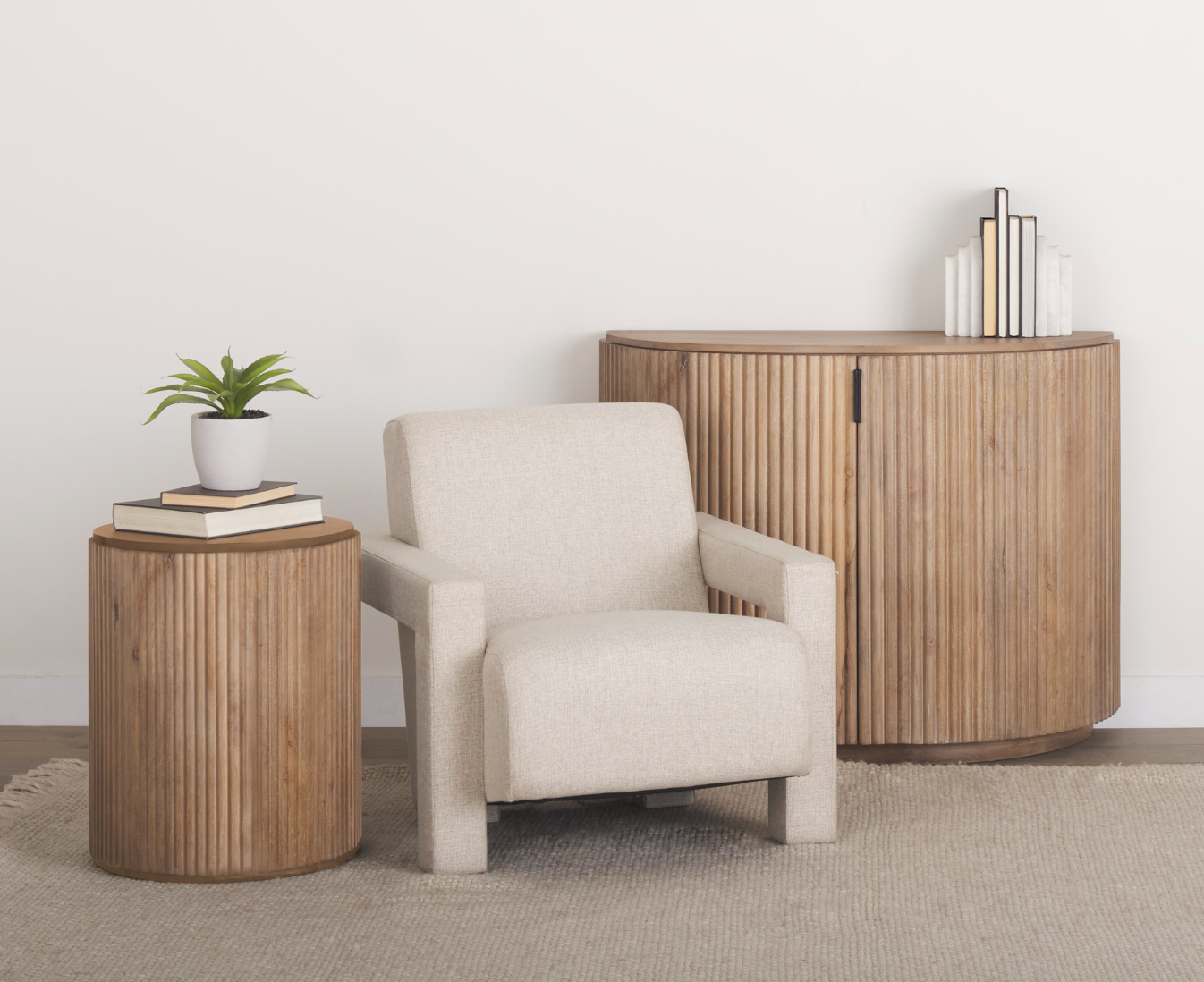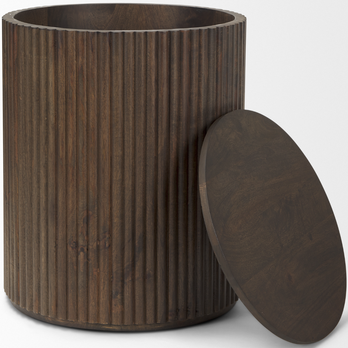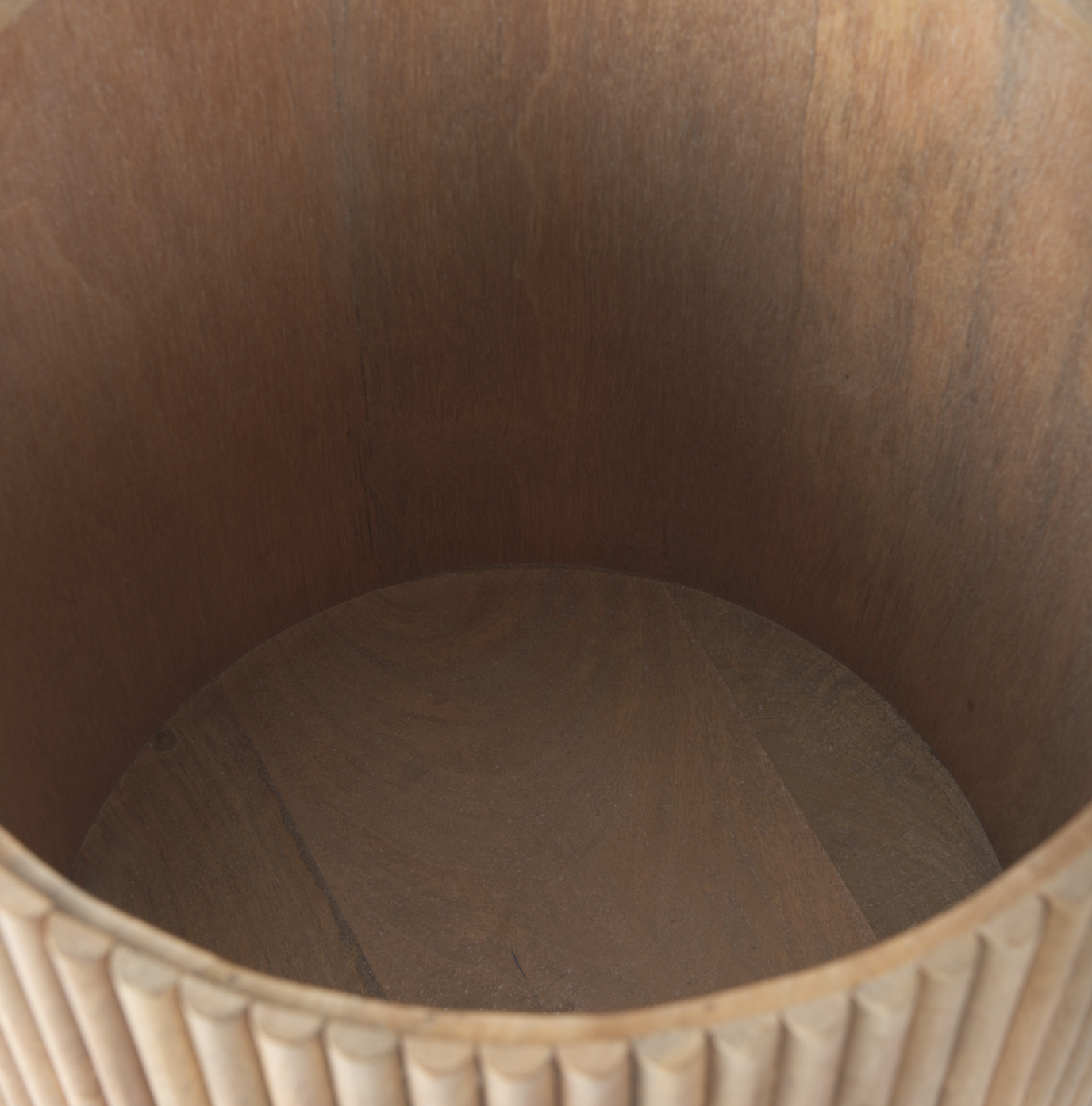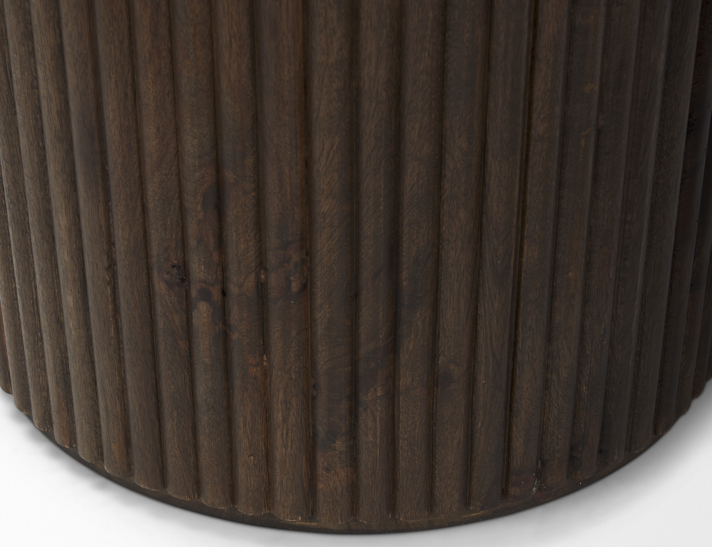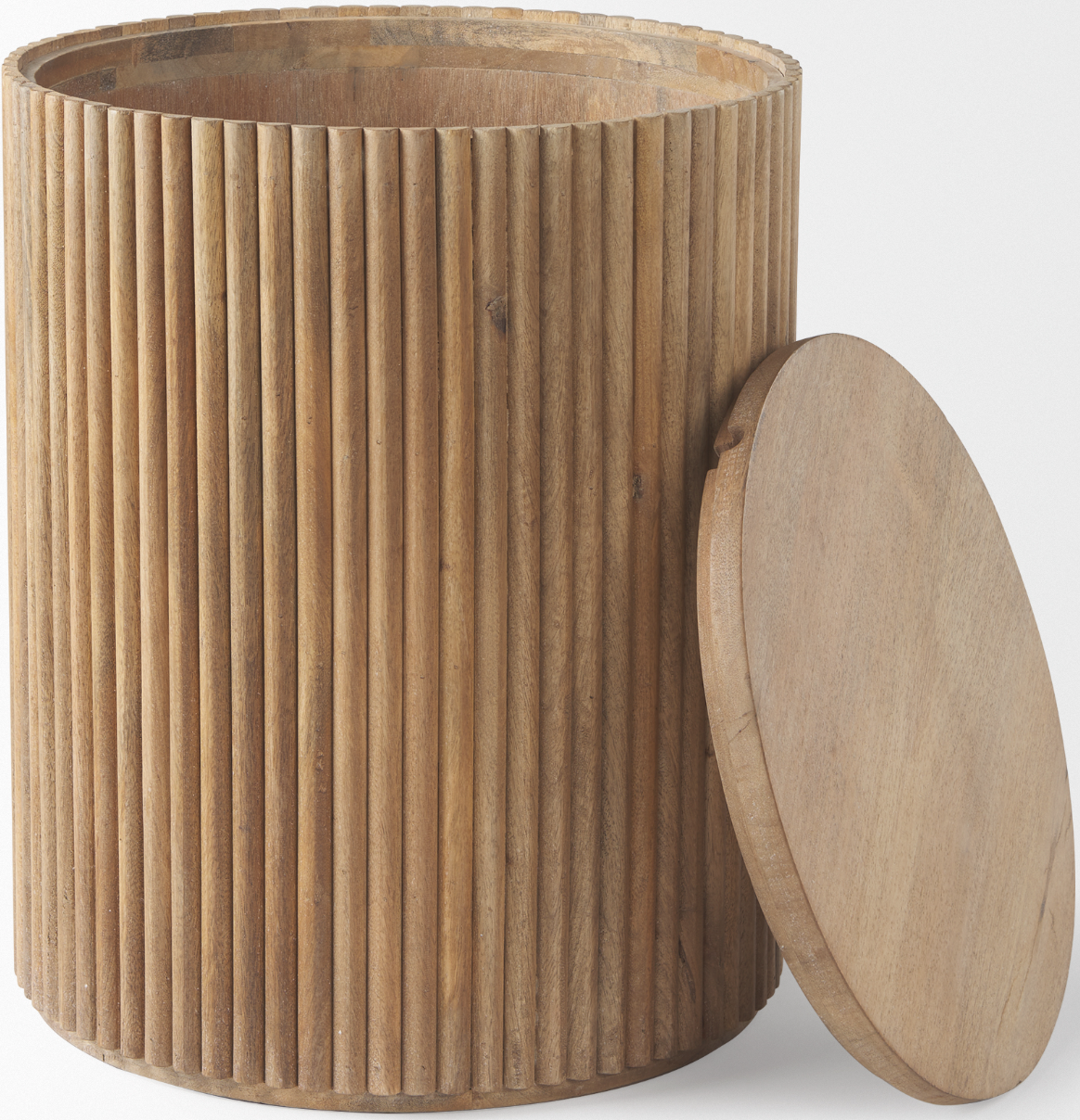 The Terra Side Table is a beautiful statement piece to include in the home or office space. Bold, contemporary, and trendy this eye-catching piece has been fashioned from solid mango wood, whose beautiful grain can be seen on the round top and amidst the fluted round base. Not only is this side table stunning, but it also opens from the top to provide storage! This quality table pairs perfectly with the Terra Coffee Table, Dining Table, and Sideboard.